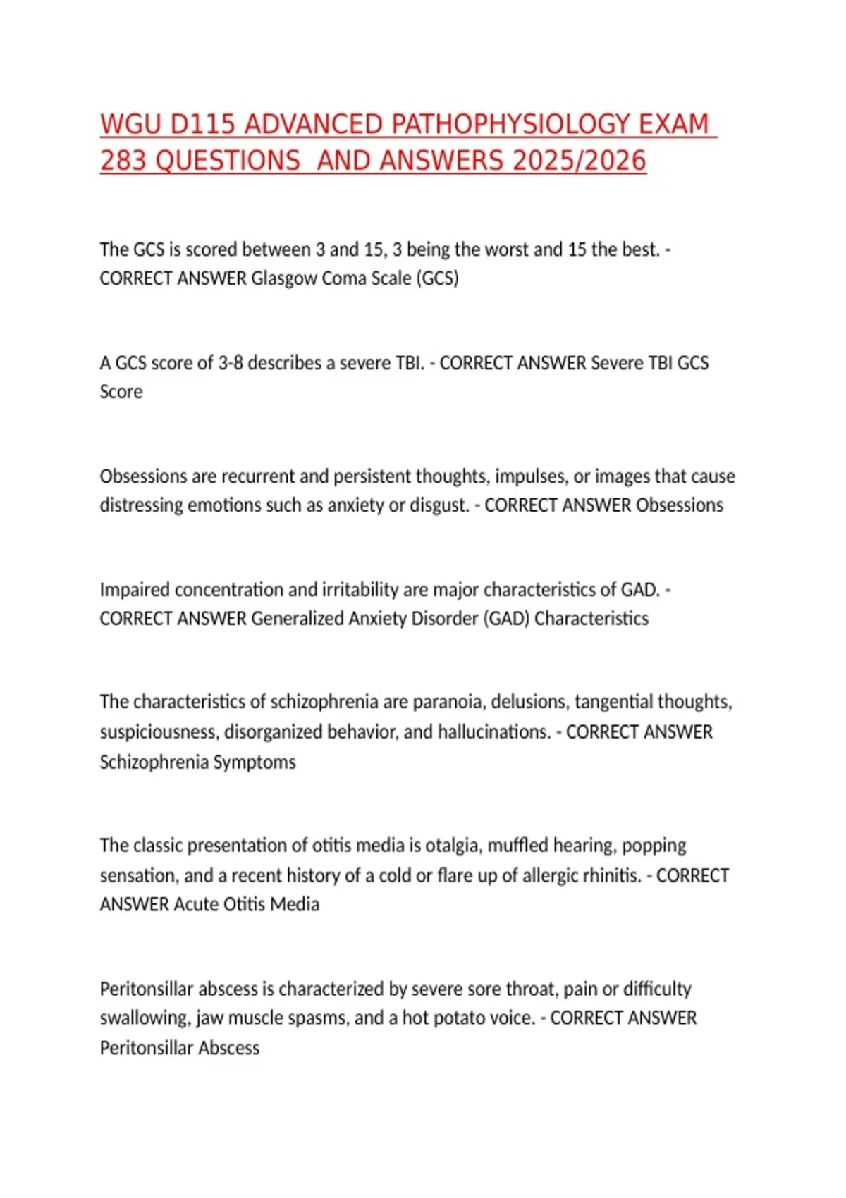 WGU D115 ADVANCED PATHOPHYSIOLOGY EXAM