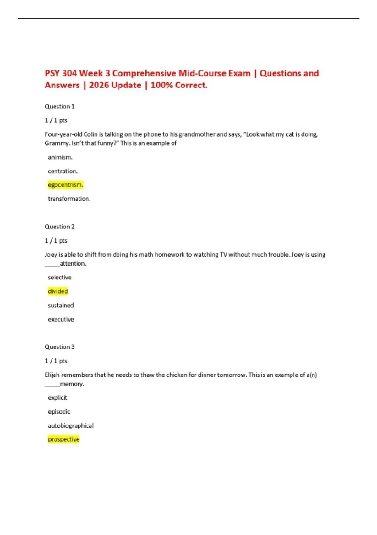 PSY 304 Week 3 Comprehensive Mid-Course Exam | Questions and Answers | 2026 Update | 100% Correct.