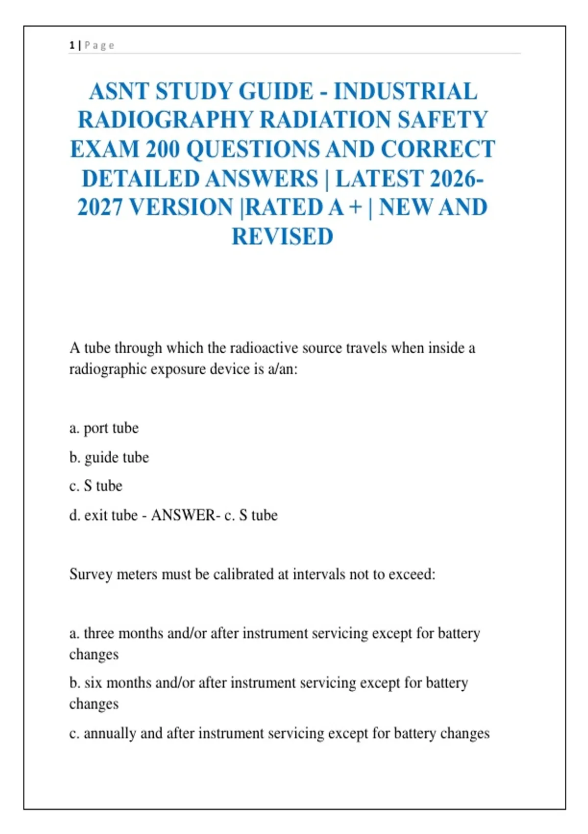 ASNT STUDY GUIDE - INDUSTRIAL RADIOGRAPHY RADIATION SAFETY EXAM 200 QUESTIONS AND CORRECT DETAILED ANSWERS | LATEST VERSION |RATED A + | NEW AND REVISED