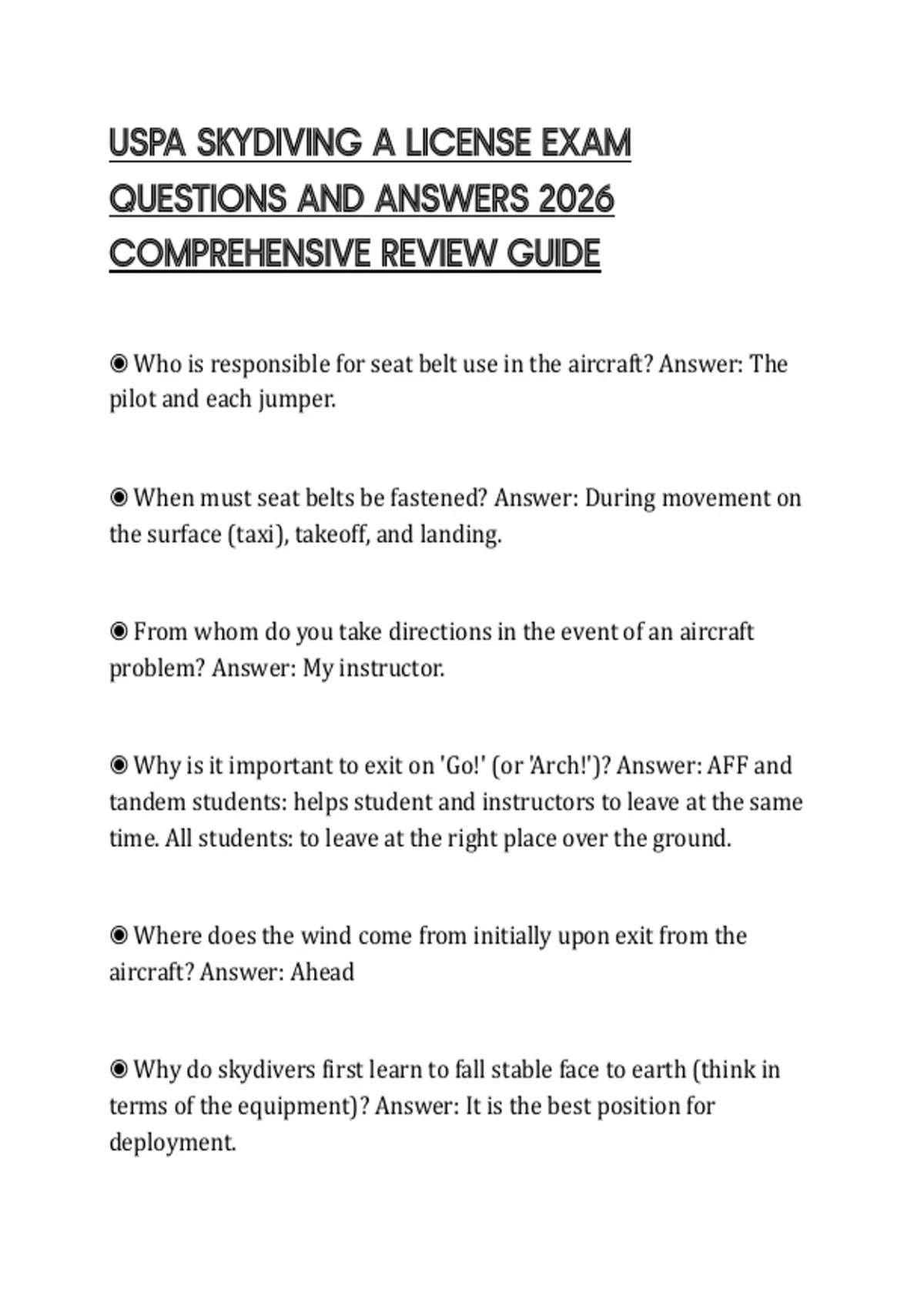 ◉ Who is responsible for seat belt use in the aircraft? Answer: The