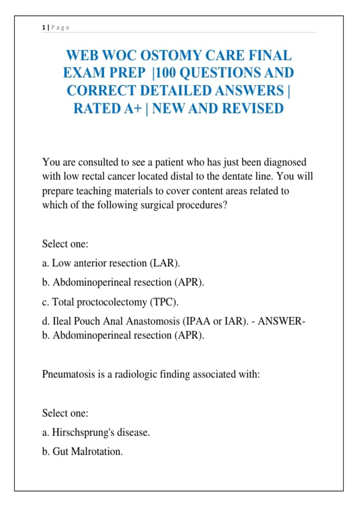 d. Diverticulitis. - ANSWER- b. Adenocarcinoma of the rectum.
