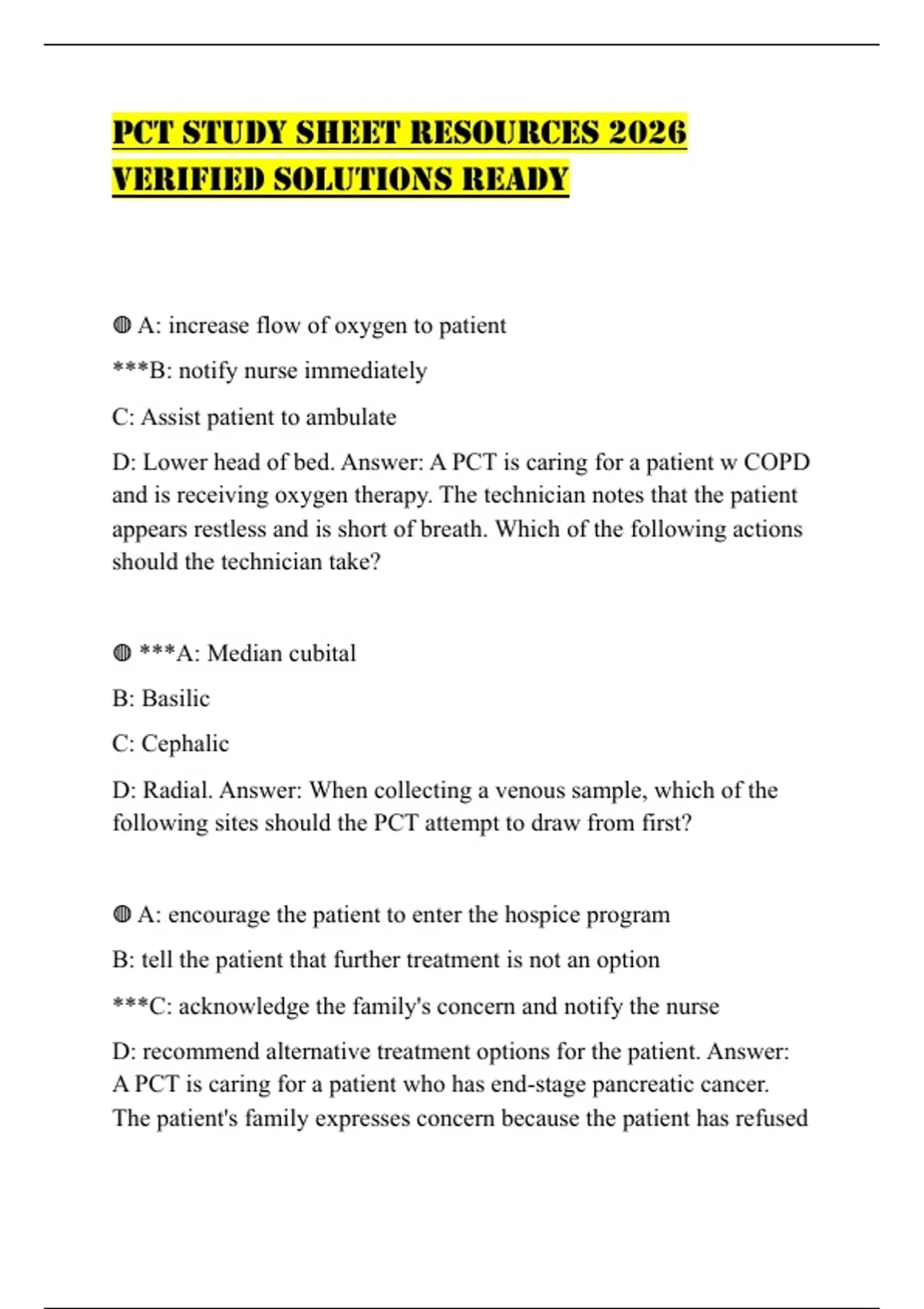 D: I will cleanse the area w/ sterile saline. Answer: A PCT should