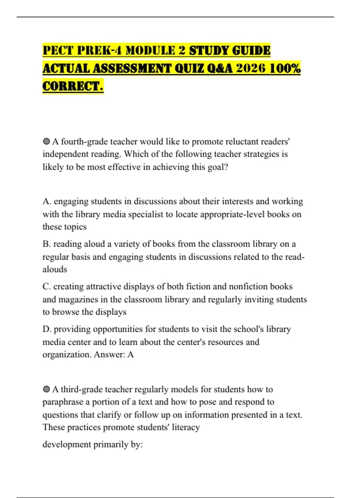 PECT PREK-4 MODULE 2 STUDY GUIDE ACTUAL ASSESSMENT QUIZ Q&A 2026 100% CORRECT.