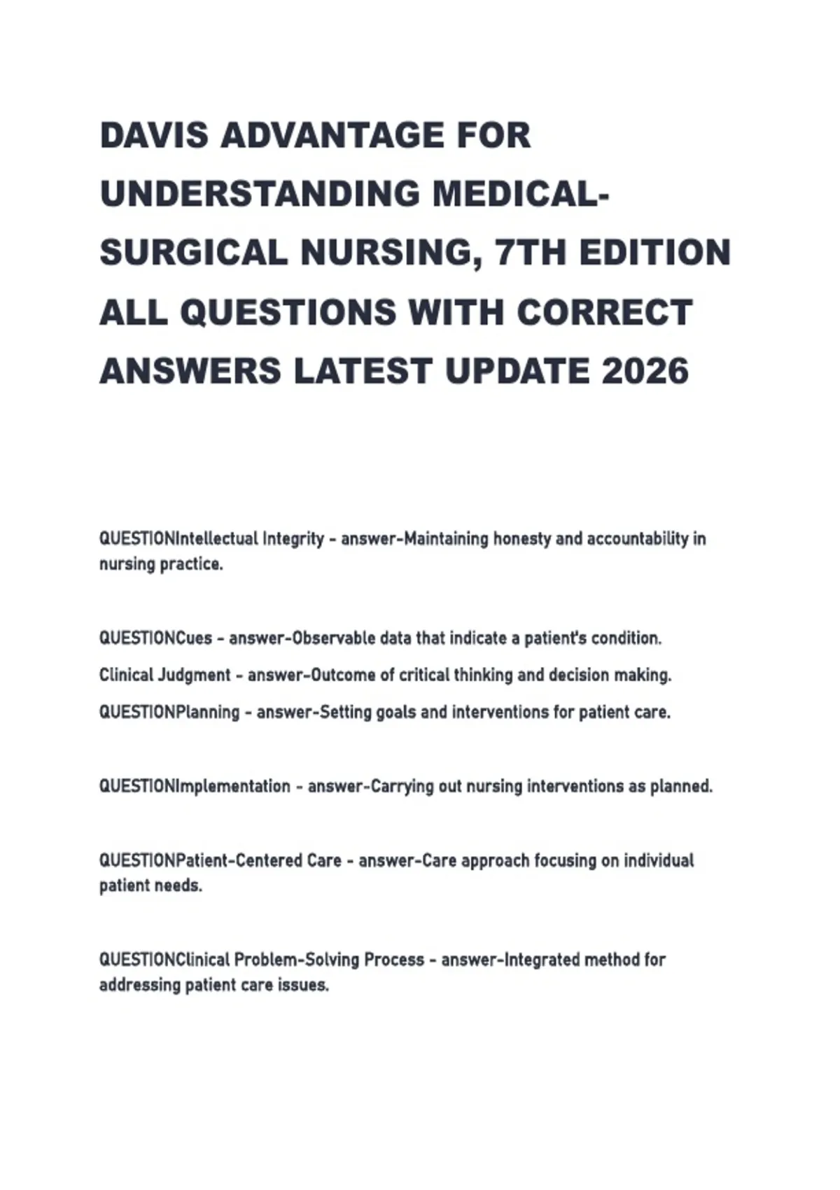 QUESTIONNursing Process - answer-A systematic approach to patient care.