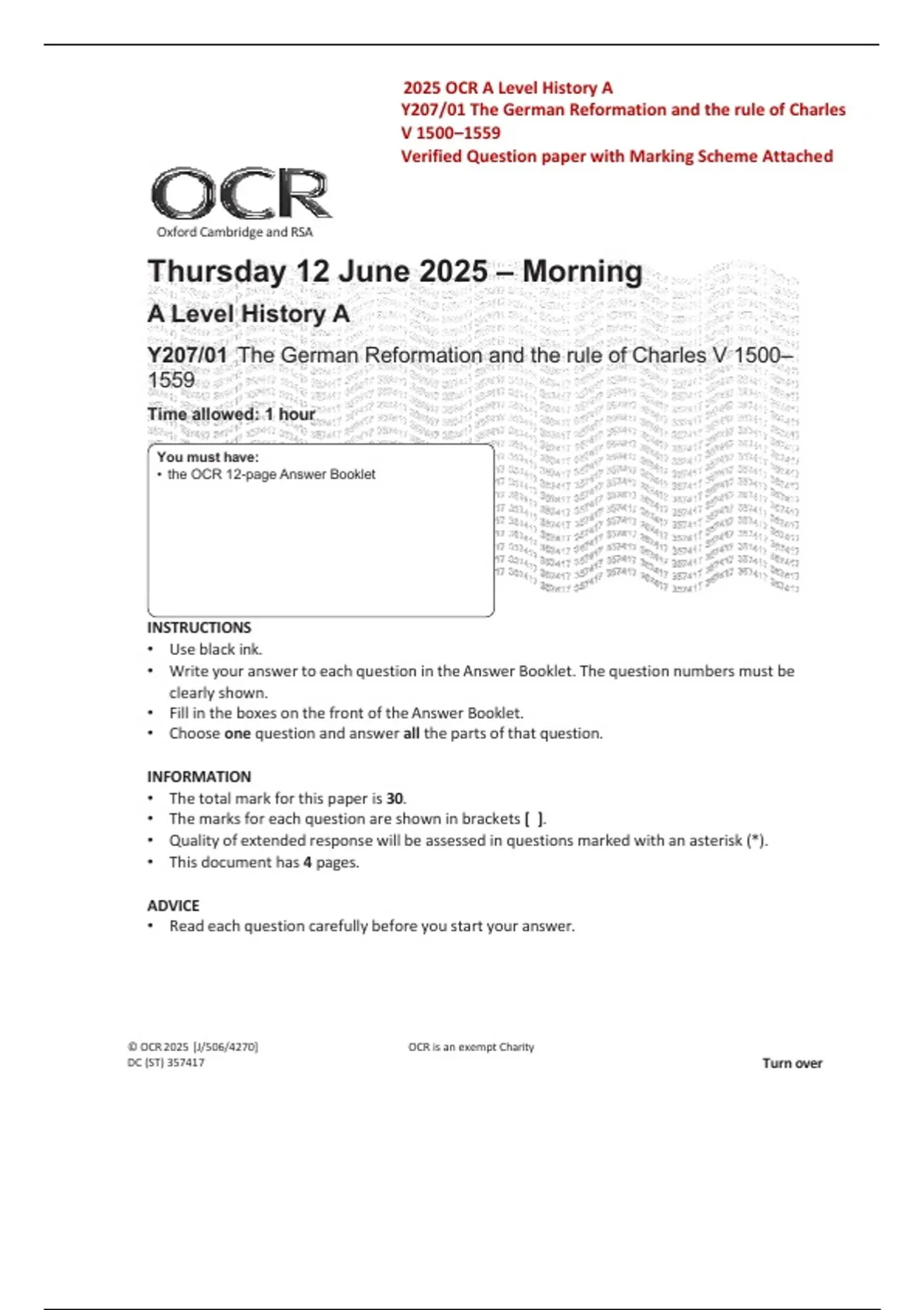 • the OCR 12-page Answer Booklet