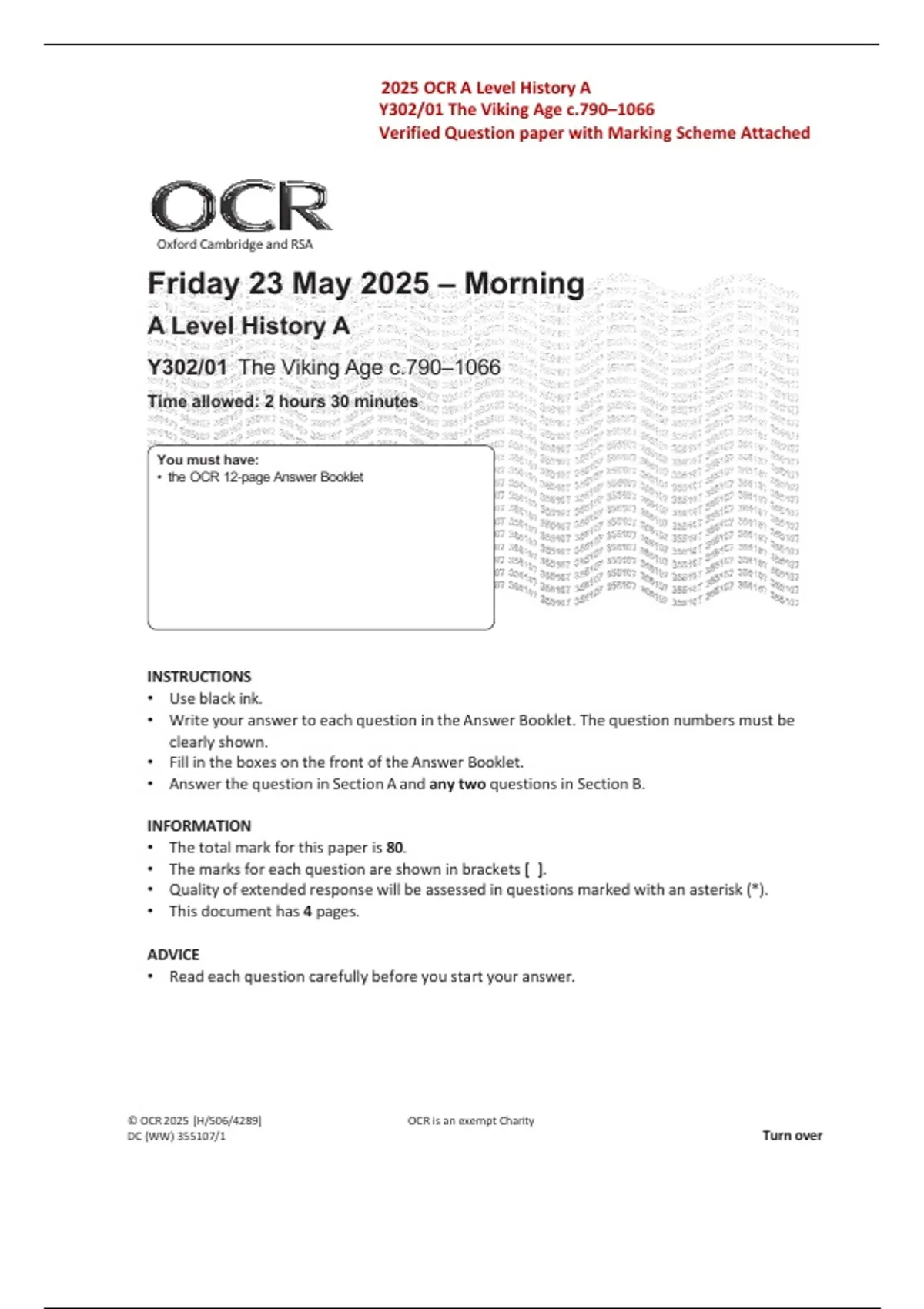 • the OCR 12‑page Answer Booklet