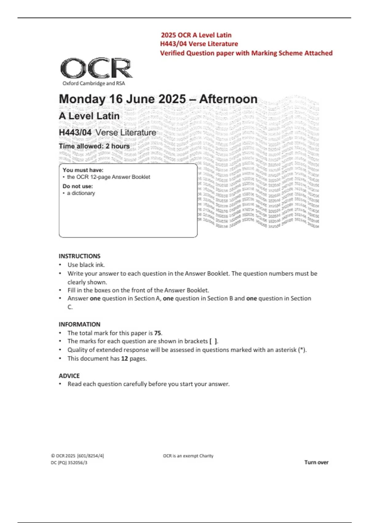 2025 OCR A Level Latin