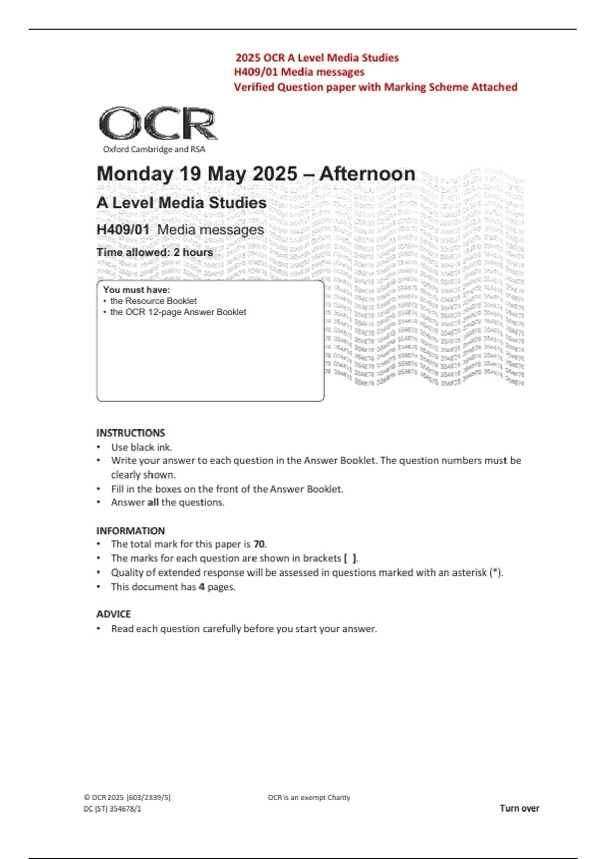 2025 OCR A Level Media Studies