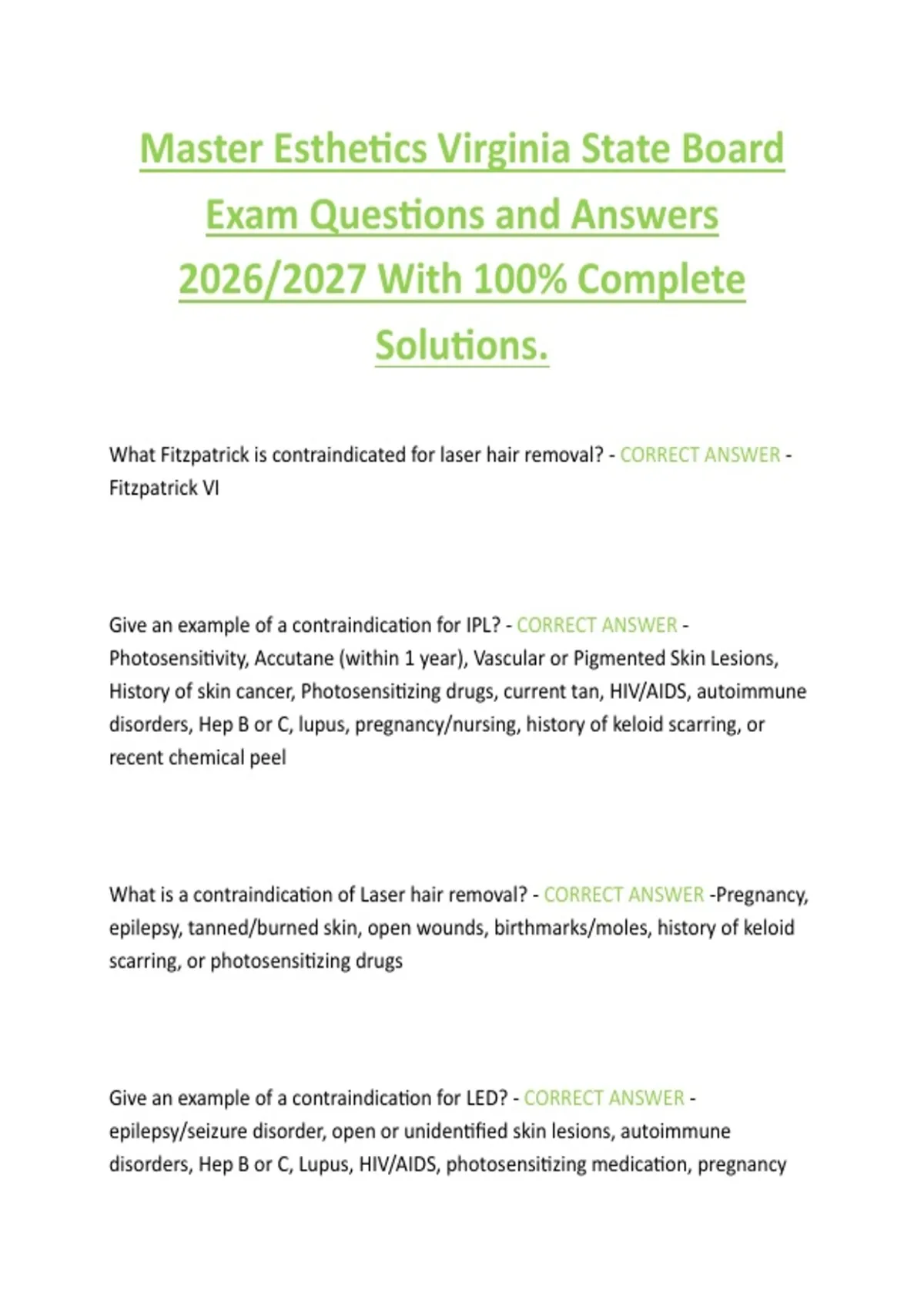 What is a contraindication of Laser hair removal? - CORRECT ANSWER -Pregnancy,