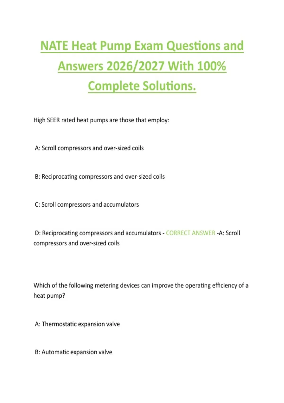 NATE Heat Pump Exam Questions and Answers 2026/2027 With 100% Complete Solutions.