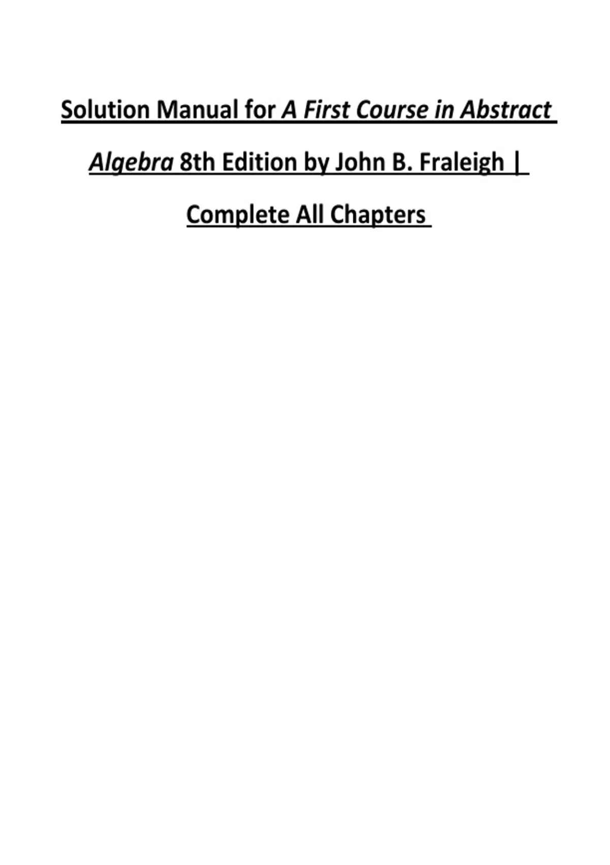 Solution Manual for A First Course in Abstract Algebra 8th Edition by John B. Fraleigh | Complete All Chapters