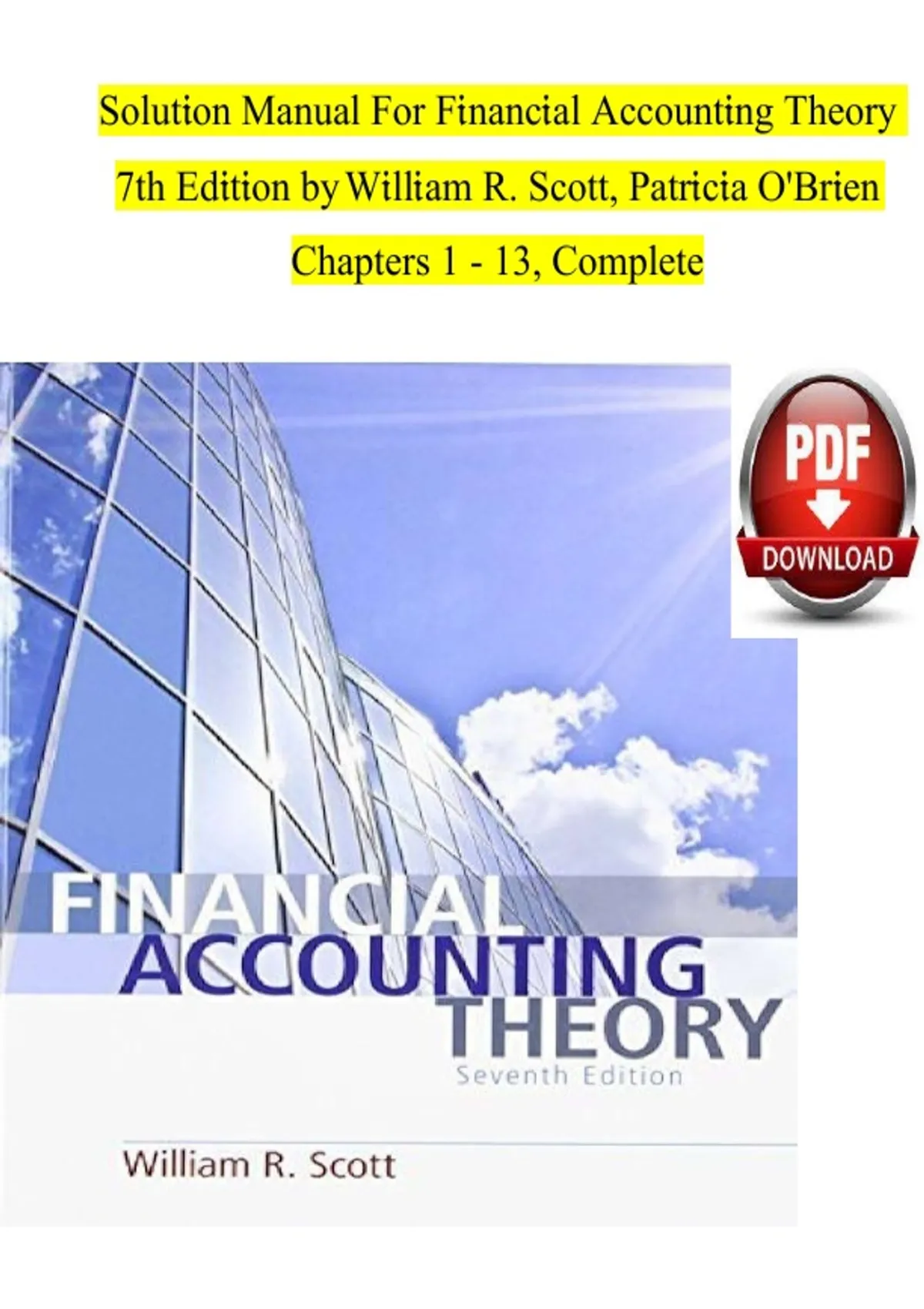 Solutions Manual for Financial Accounting Theory 7th Edition Scott & O’Brien Complete Chapters 1–13