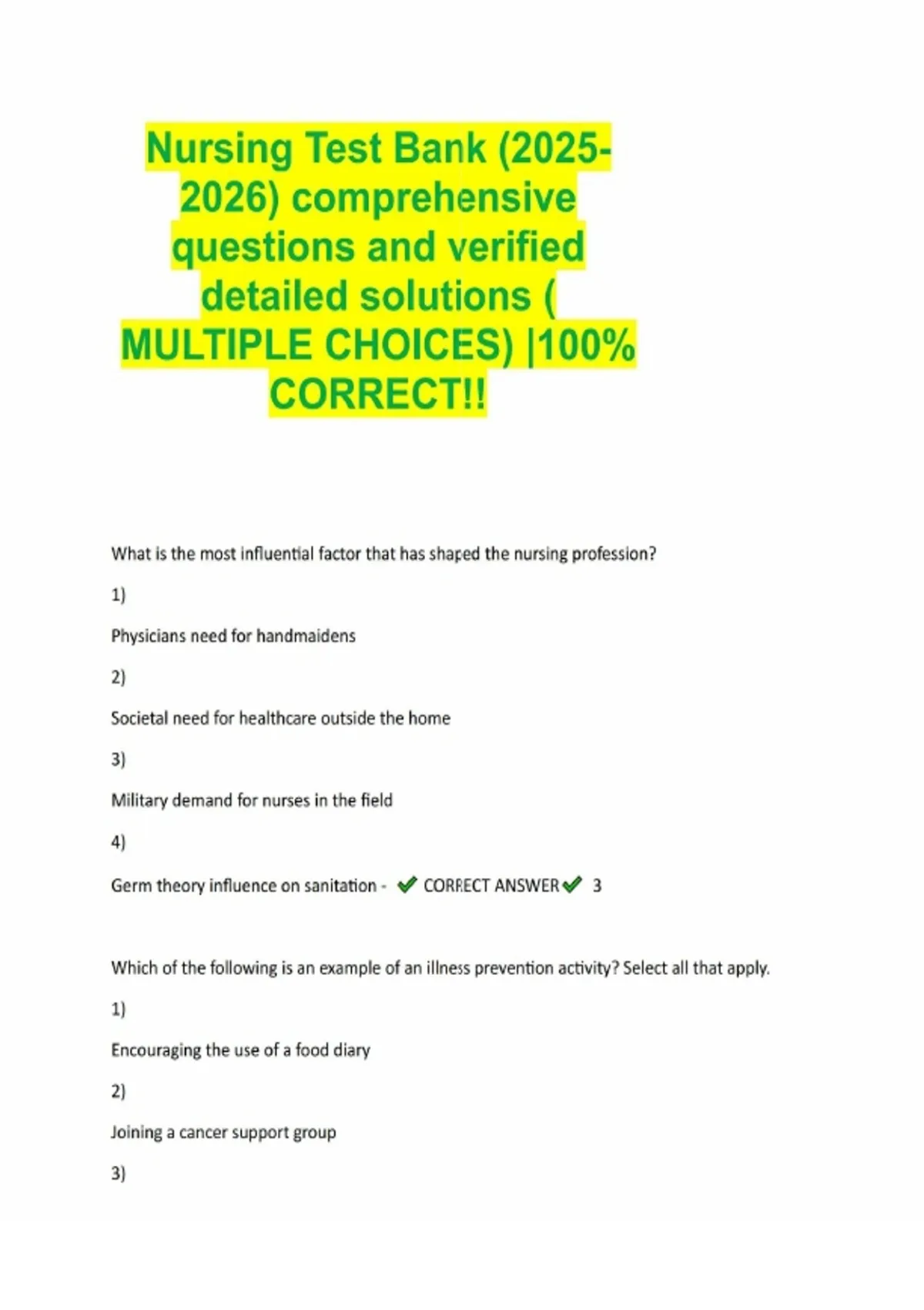 Nursing Test Bank () comprehensive questions and verified detailed solutions ( MULTIPLE CHOICES) 100- CORRECT.