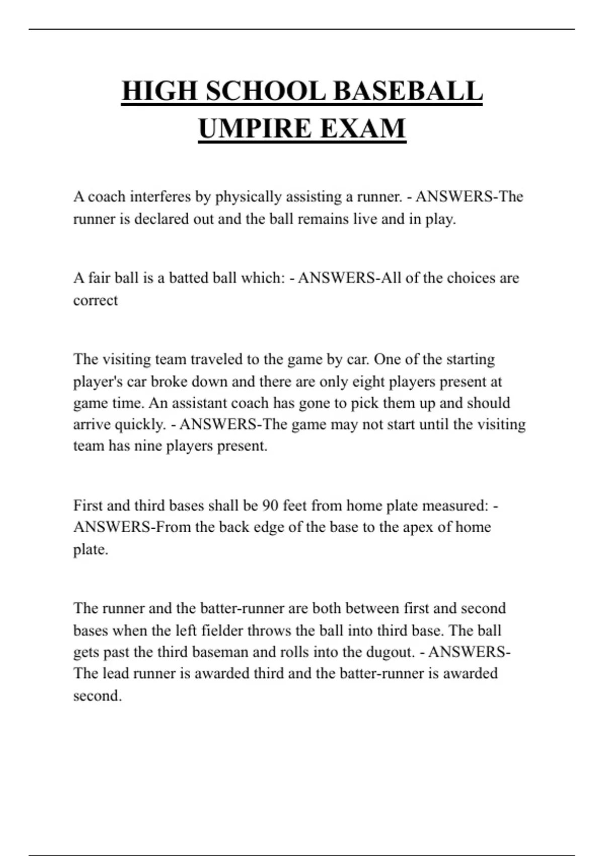 HIGH SCHOOL BASEBALL UMPIRE EXAM QUESTIONS AND ANSWERS 2026