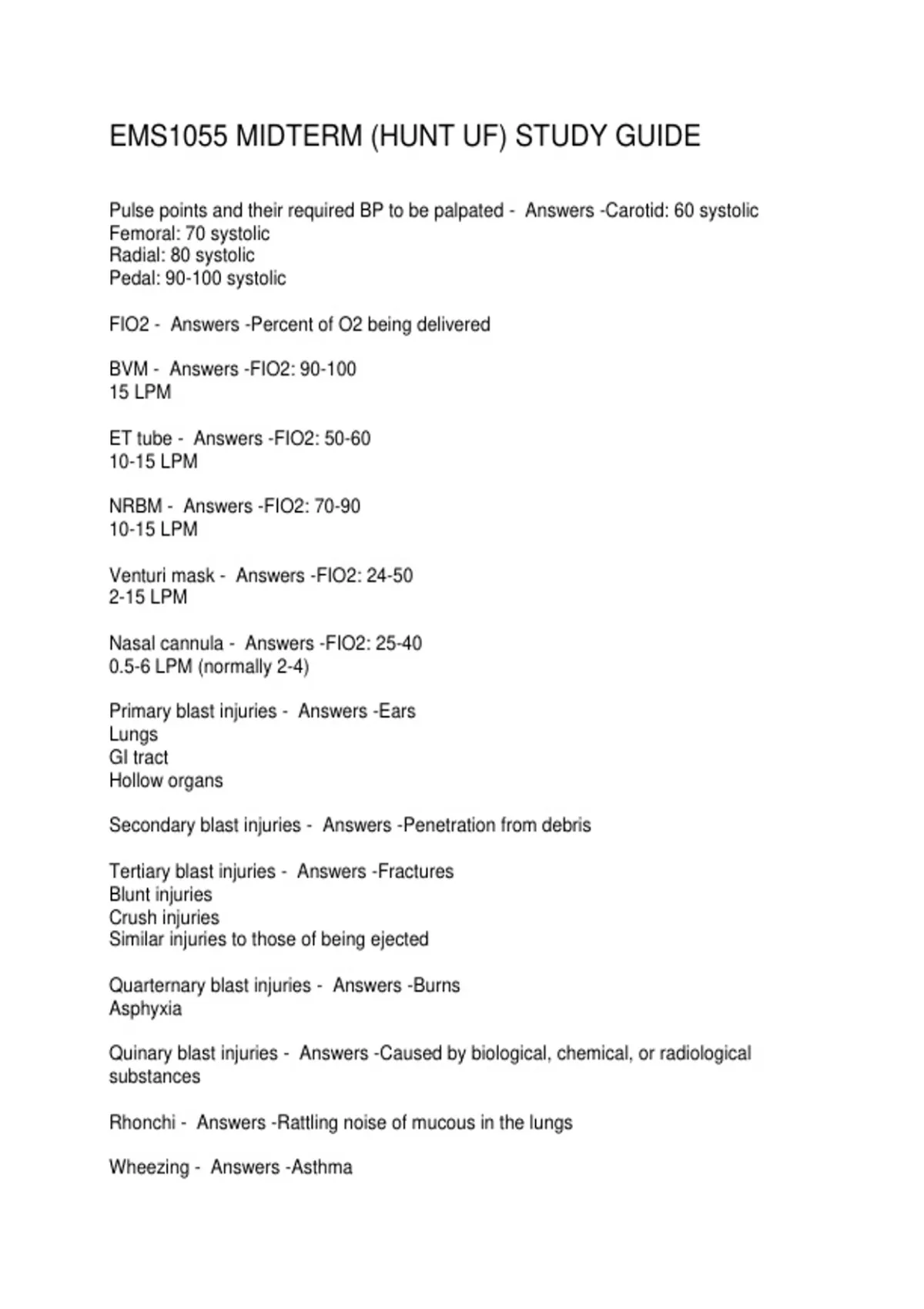 EMS1055 MIDTERM (HUNT UF) STUDY GUIDE