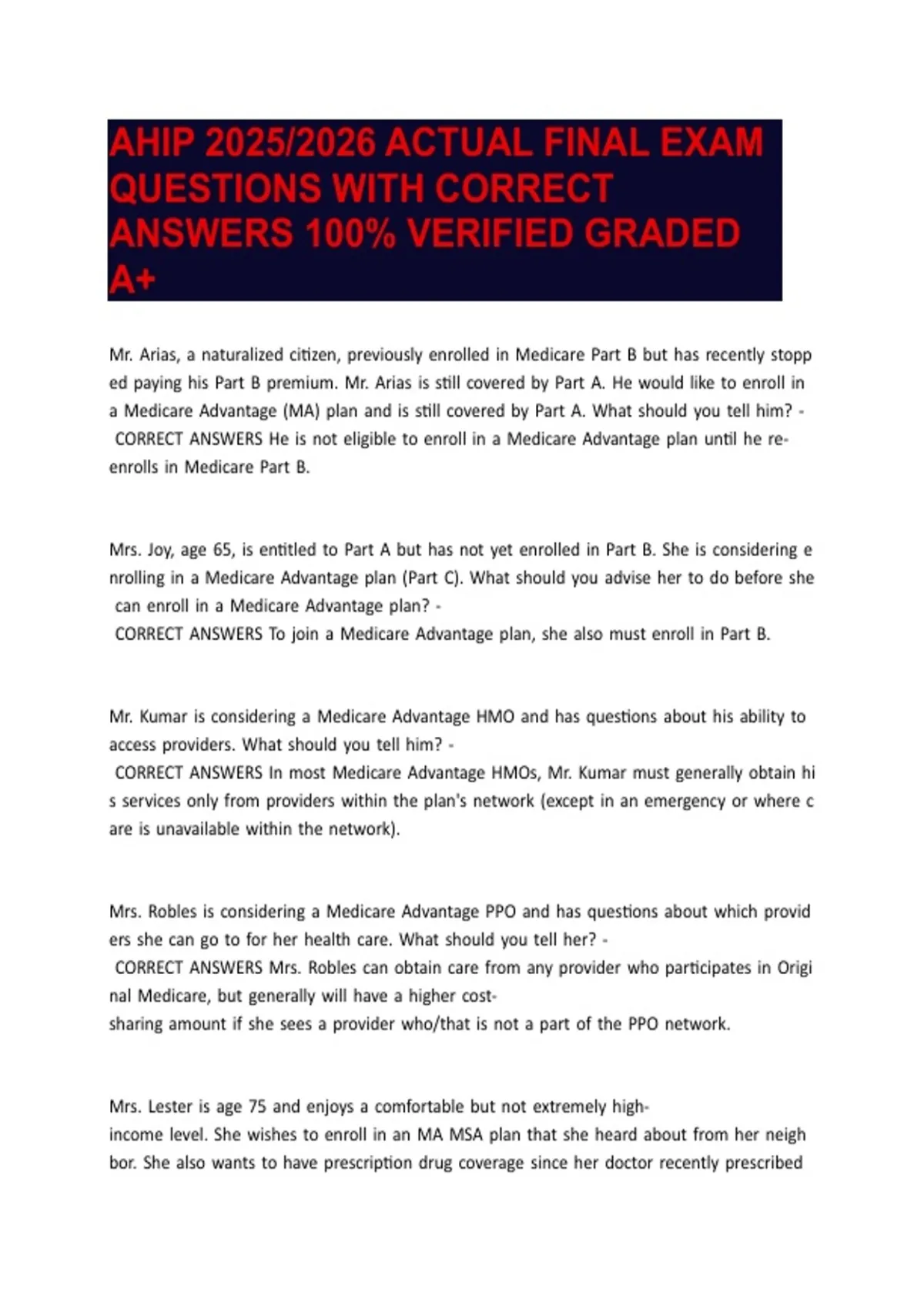 AHIP 2025/2026 ACTUAL FINAL EXAM QUESTIONS WITH CORRECT ANSWERS 100% VERIFIED GRADED A+