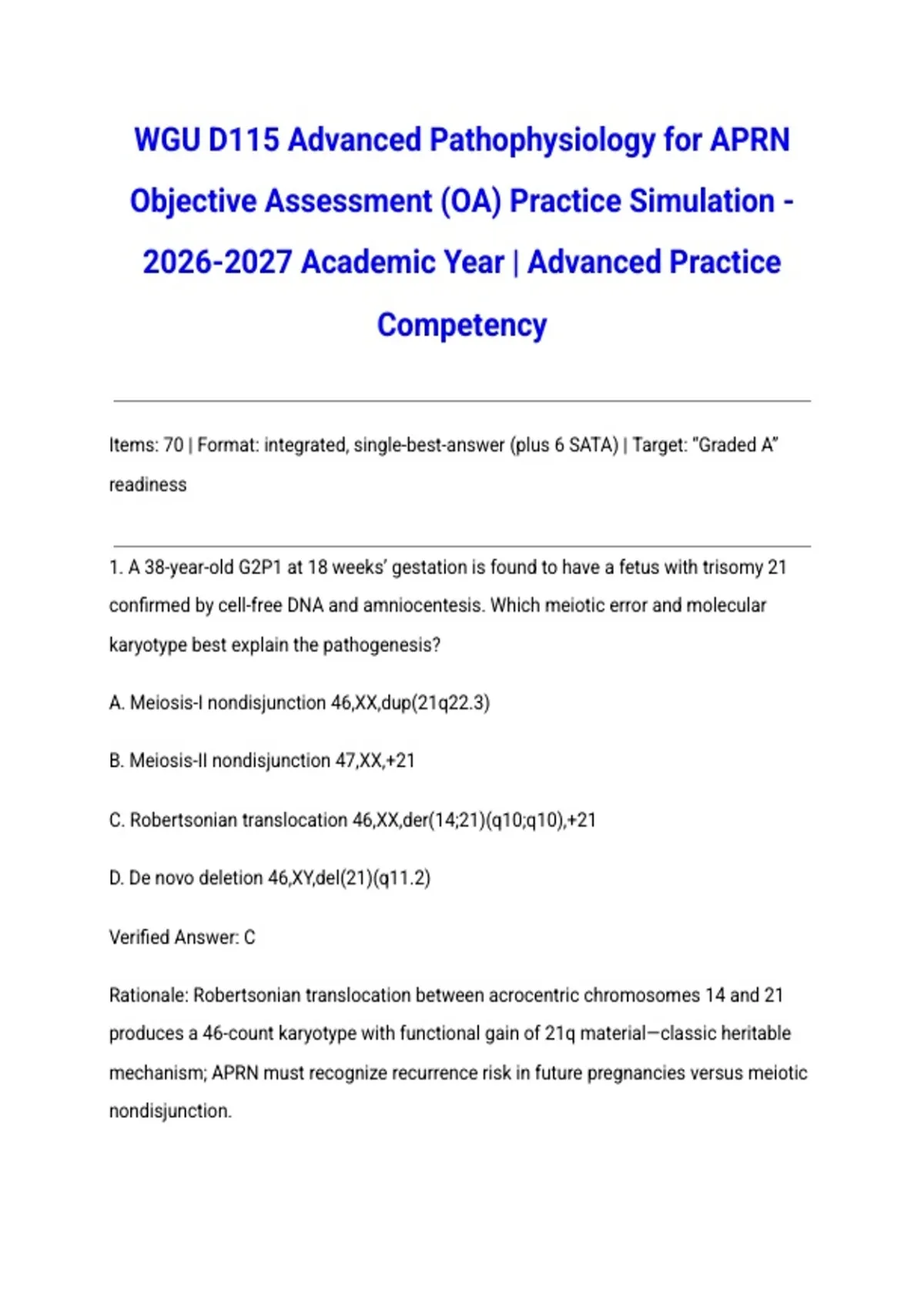 Items: 70 | Format: integrated, single-best-answer (plus 6 SATA) | Target: “Graded A”