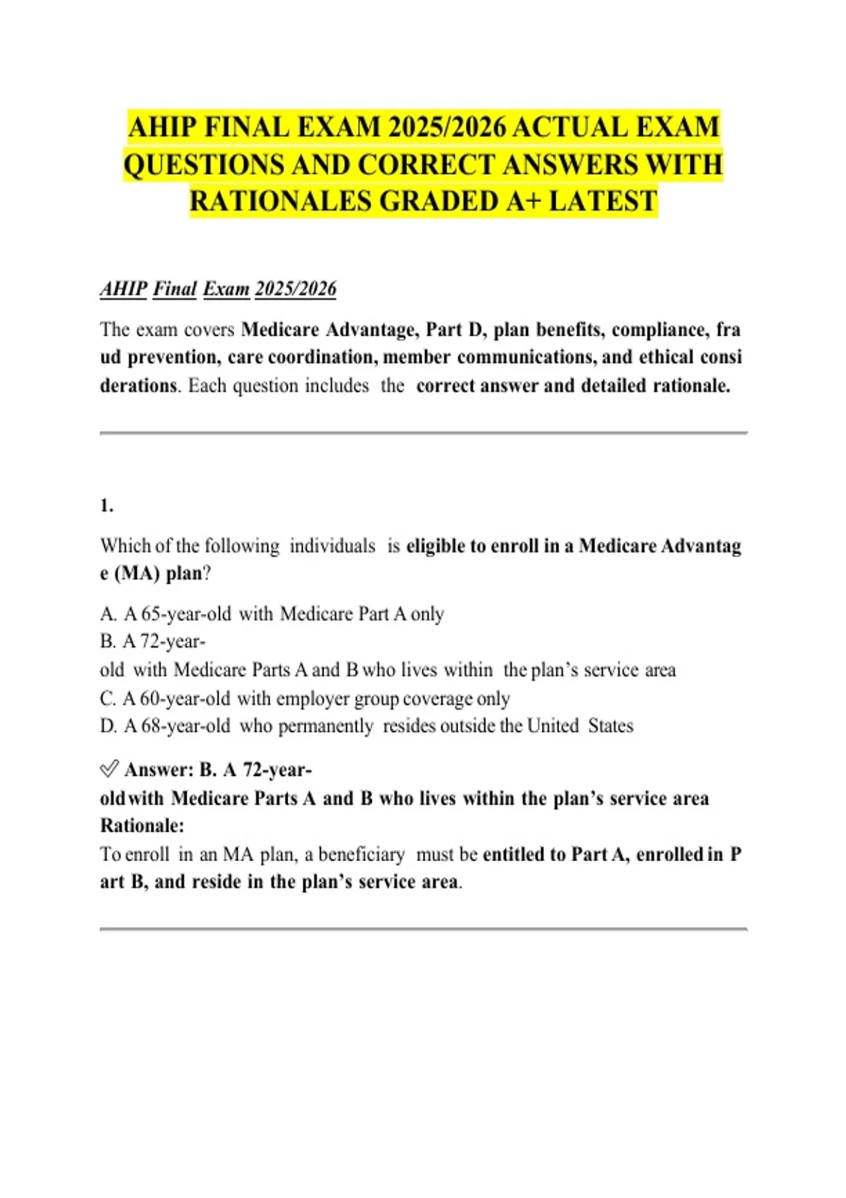 AHIP Final Exam 2025/2026 sw sw sw