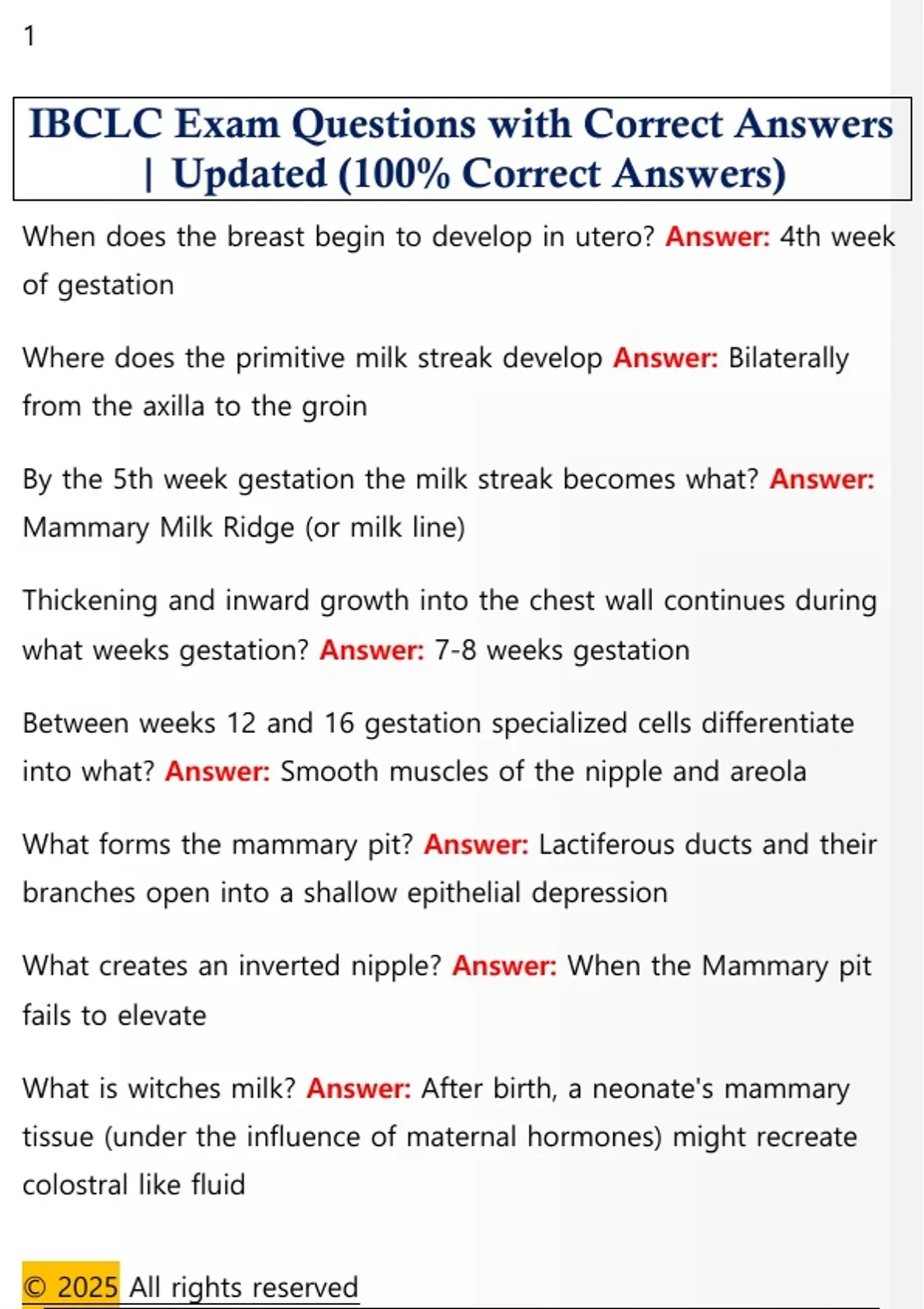 IBCLC Exam Questions with Correct Answers