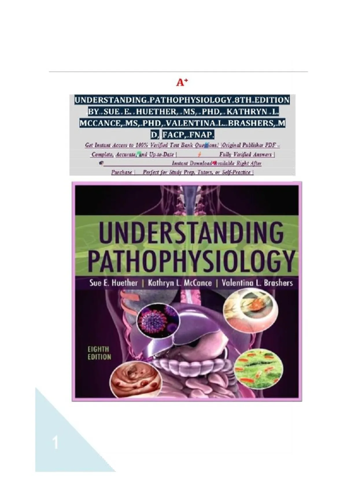 Test Bank for Understanding Pathophysiology, 8th Edition by Sue E. Huether, Kathryn L. McCance and Valentina L. Brashers isbn-9780323938051 All Chapters 1-44 Verified Latest Edition Guaranteed Pass