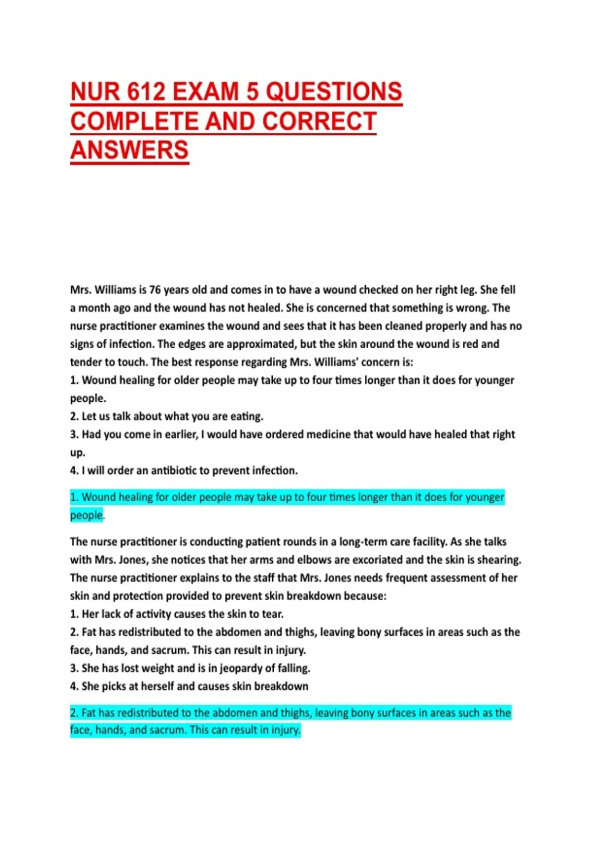 Mrs. Williams is 76 years old and comes in to have a wound checked on her right leg. She fell