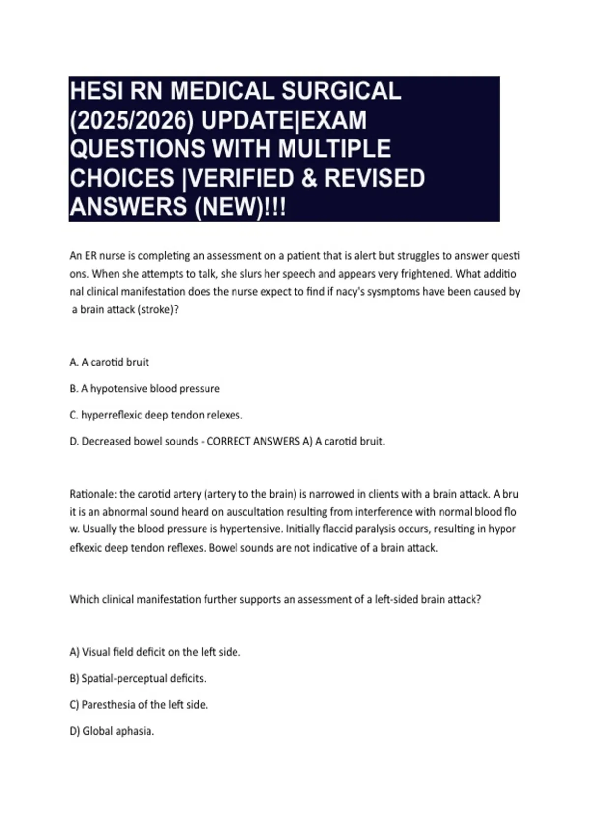 HESI RN MEDICAL SURGICAL (2025/2026) UPDATE|EXAM QUESTIONS WITH MULTIPLE CHOICES |VERIFIED & REVISED ANSWERS (NEW)!!!