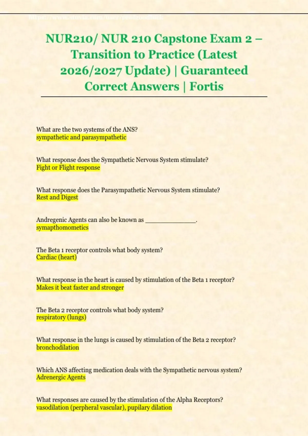 NUR210/ NUR 210 Capstone Exam 2 –