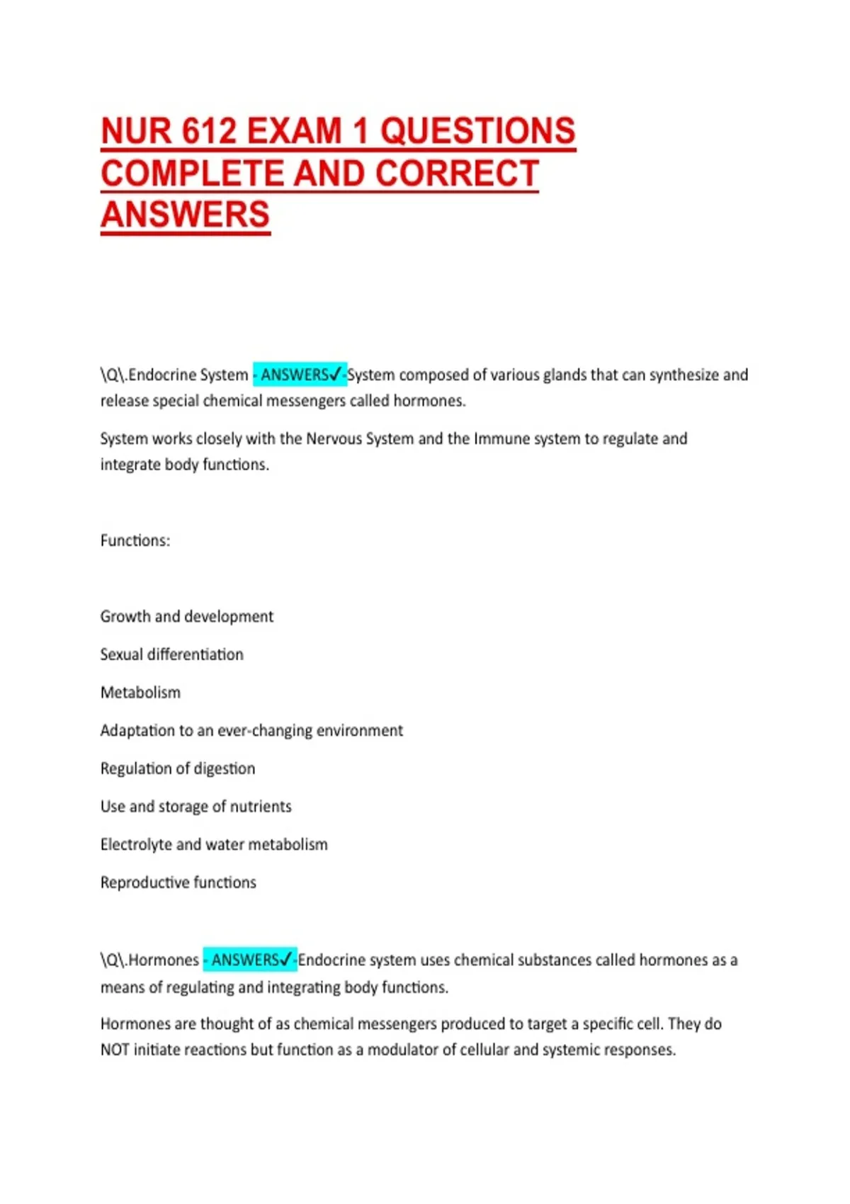 \Q\.Endocrine - ANSWERS✔-Hormones are released in the circulation to act on a target organ