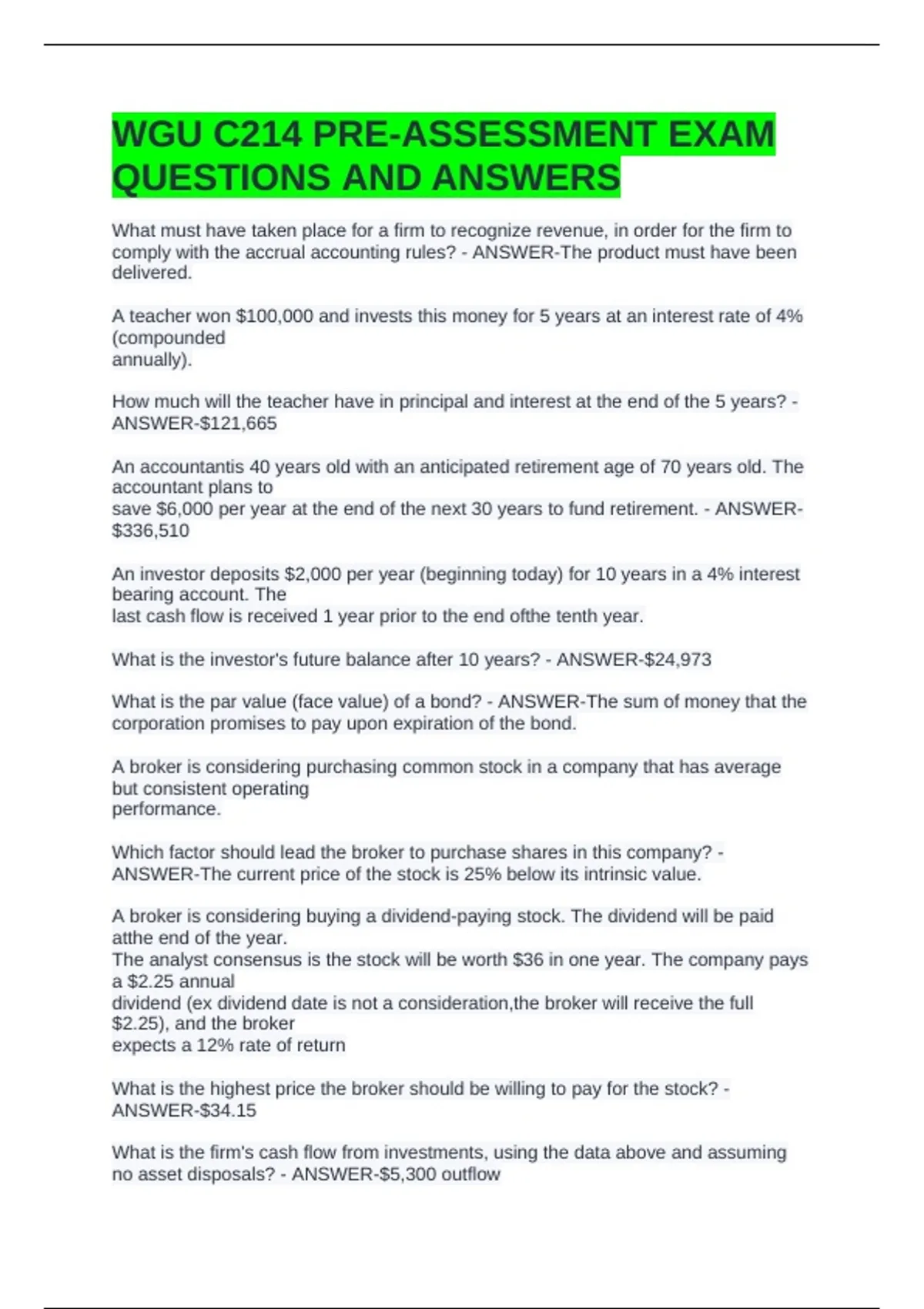 WGU C214 PRE-ASSESSMENT EXAM QUESTIONS AND ANSWERS