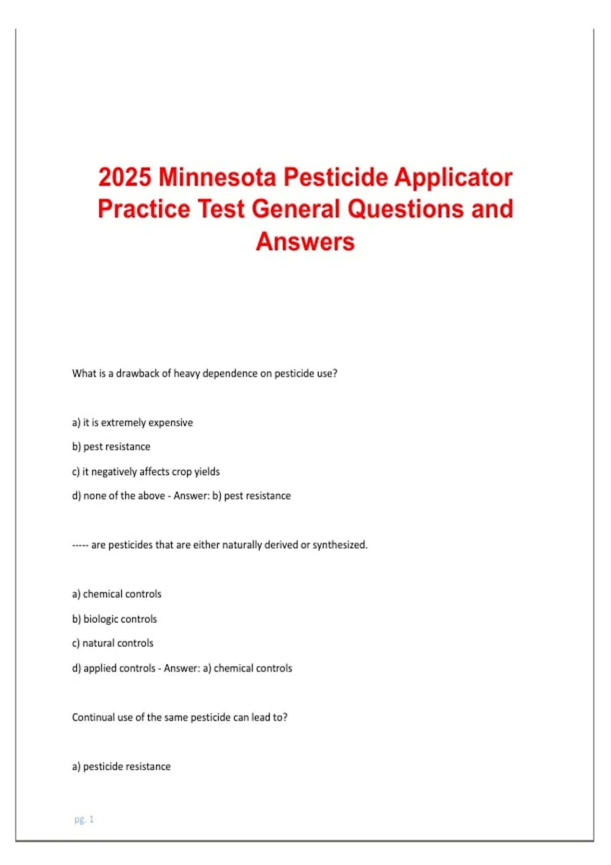 pg. 2!#@$%#@# 2025 Minnesota Pesticide Applicator Practice Test General Questions and Answers