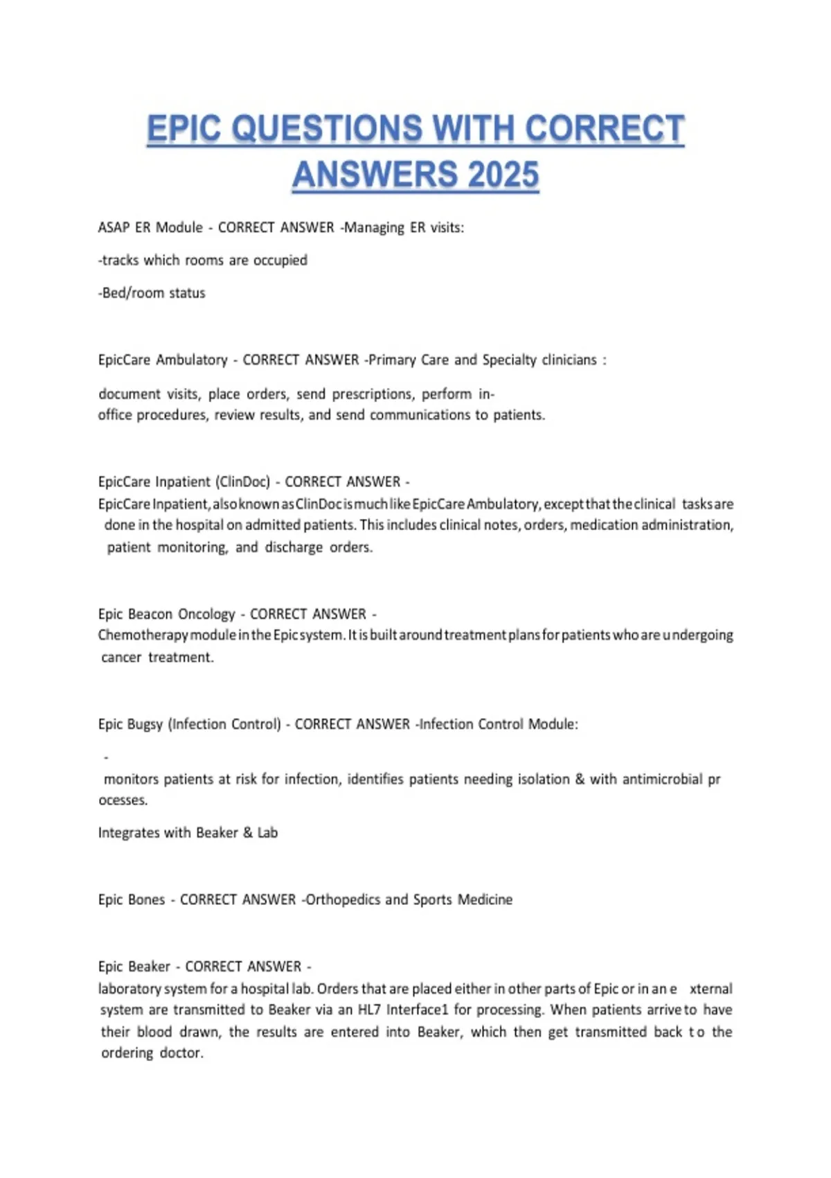 EpicCare Inpatient (ClinDoc) - CORRECT ANSWER -