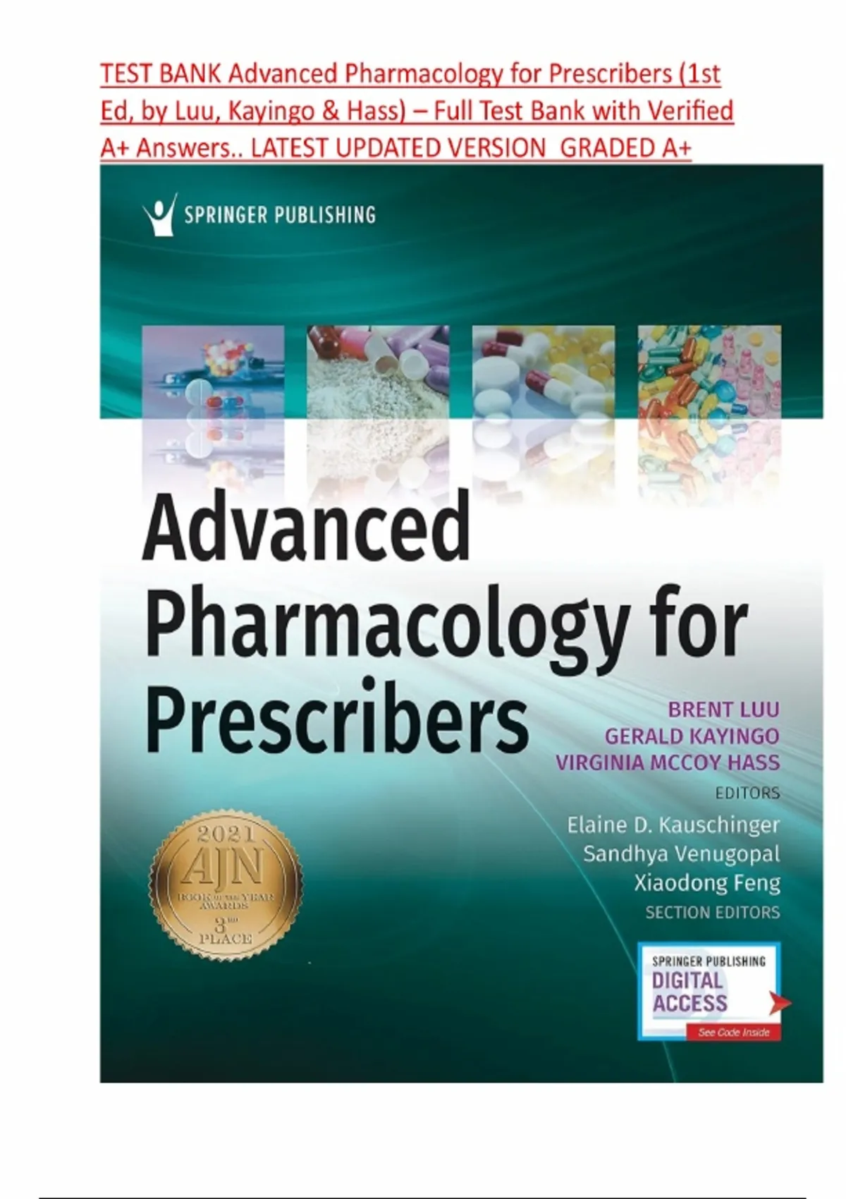 Test Bank for Advanced Pharmacology for Prescribers 1st Edition Luu, Kayingo, and Hass | All Chapters, Latest Updated Version , Already Graded A+