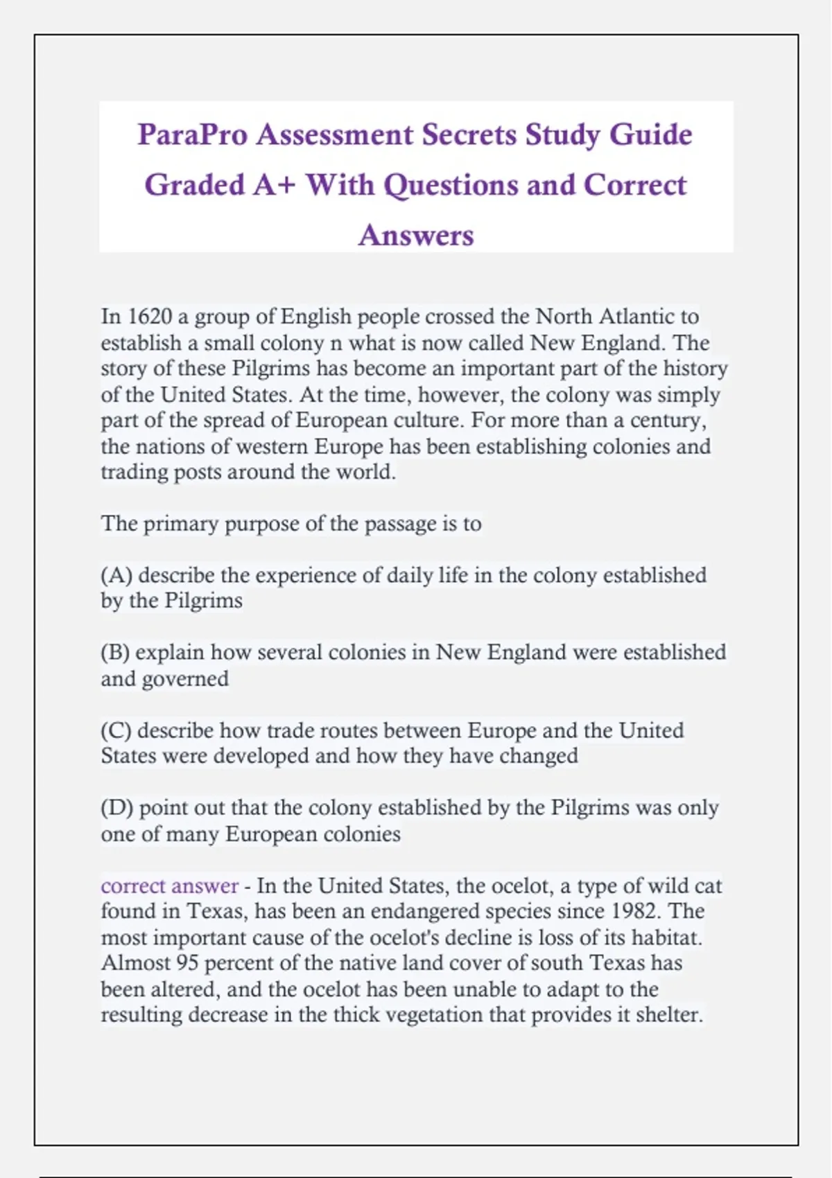(D) point out that the colony established by the Pilgrims was only