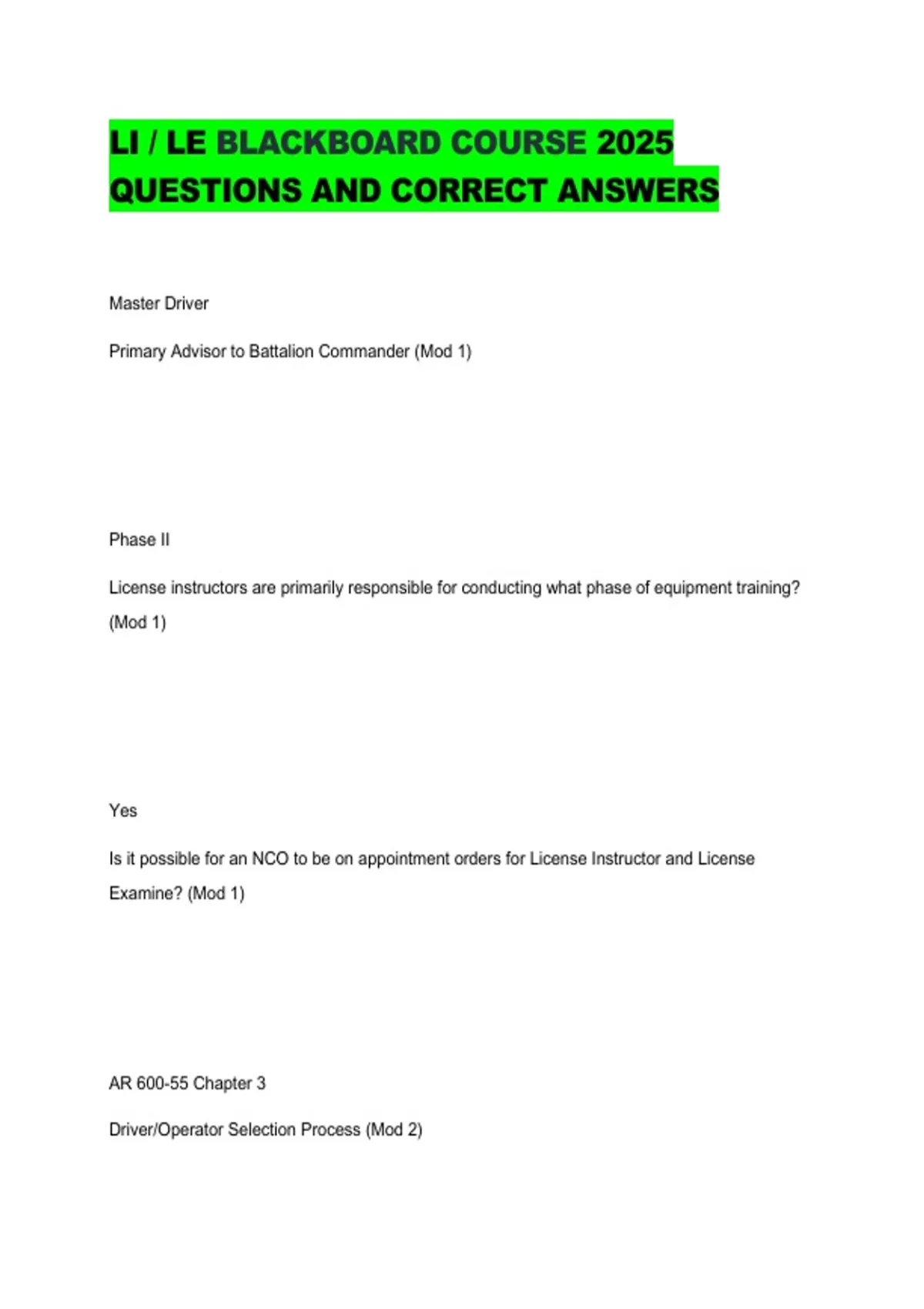 LE BLACKBOARD COURSE 2025 QUESTIONS AND CORRECT ANSWERS.pdf