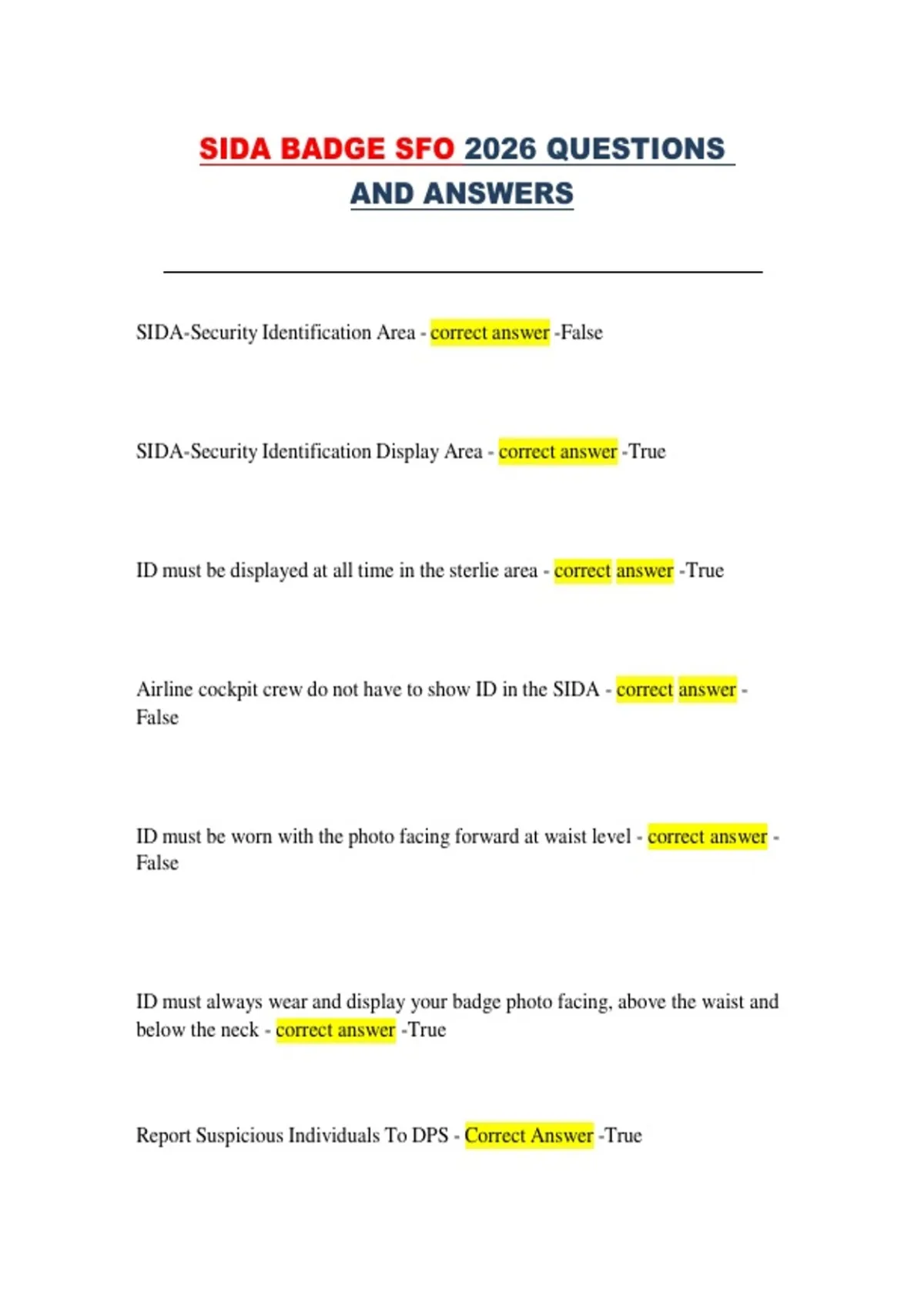 SIDA-Security Identification Display Area - correct answer -True