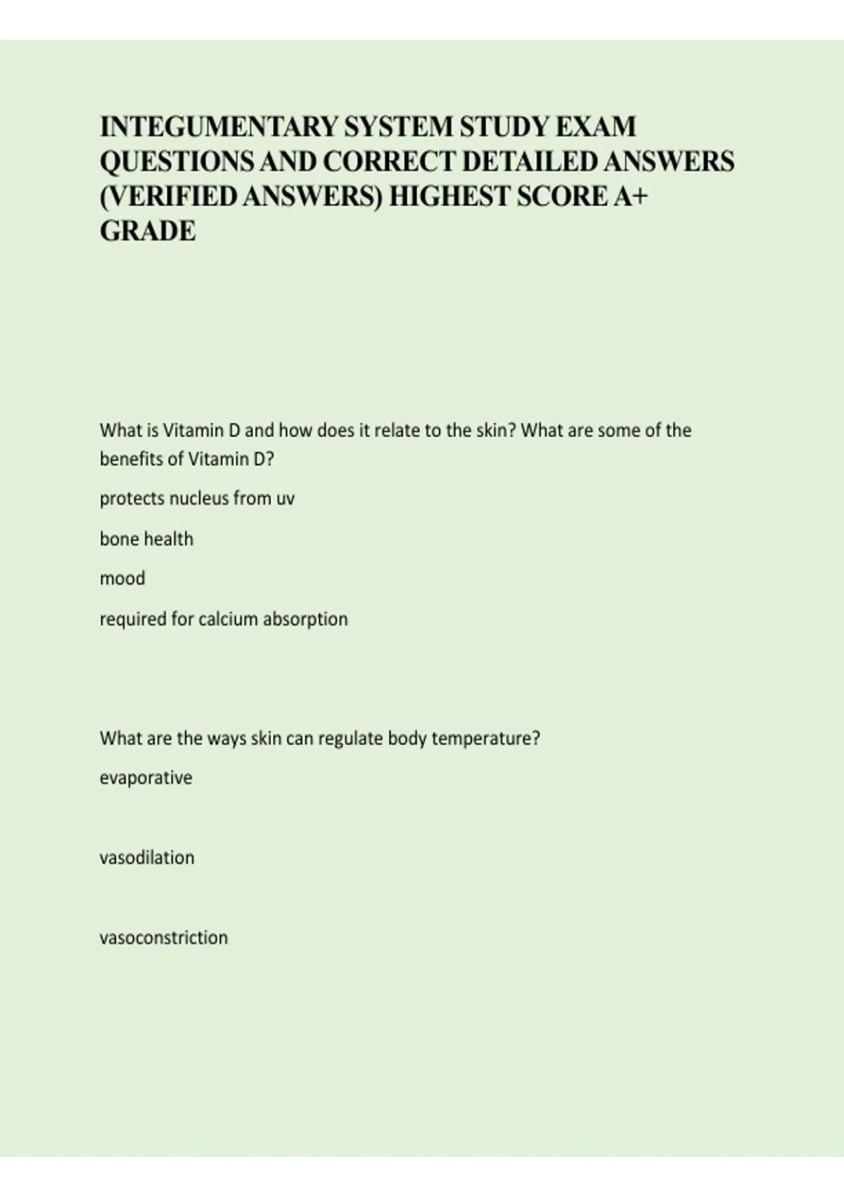 INTEGUMENTARY SYSTEM STUDY EXAM
