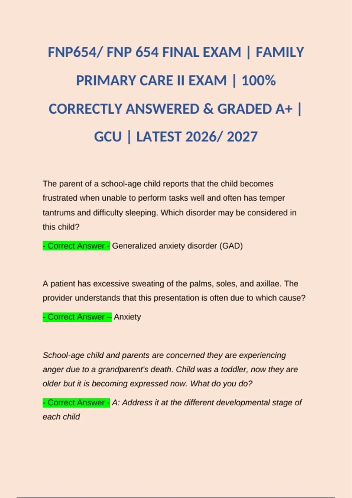 FNP654/ FNP 654 FINAL EXAM | FAMILY PRIMARY CARE II EXAM | 100% CORRECTLY ANSWERED & GRADED A+ | GCU | LATEST 2026/ 2027 FNP654/ FNP 654 FINAL EXAM | FAMILY PRIMARY CARE II EXAM | 100% CORRECTLY ANSWERED & GRADED A+ | GCU | LATEST 2026/ 2027