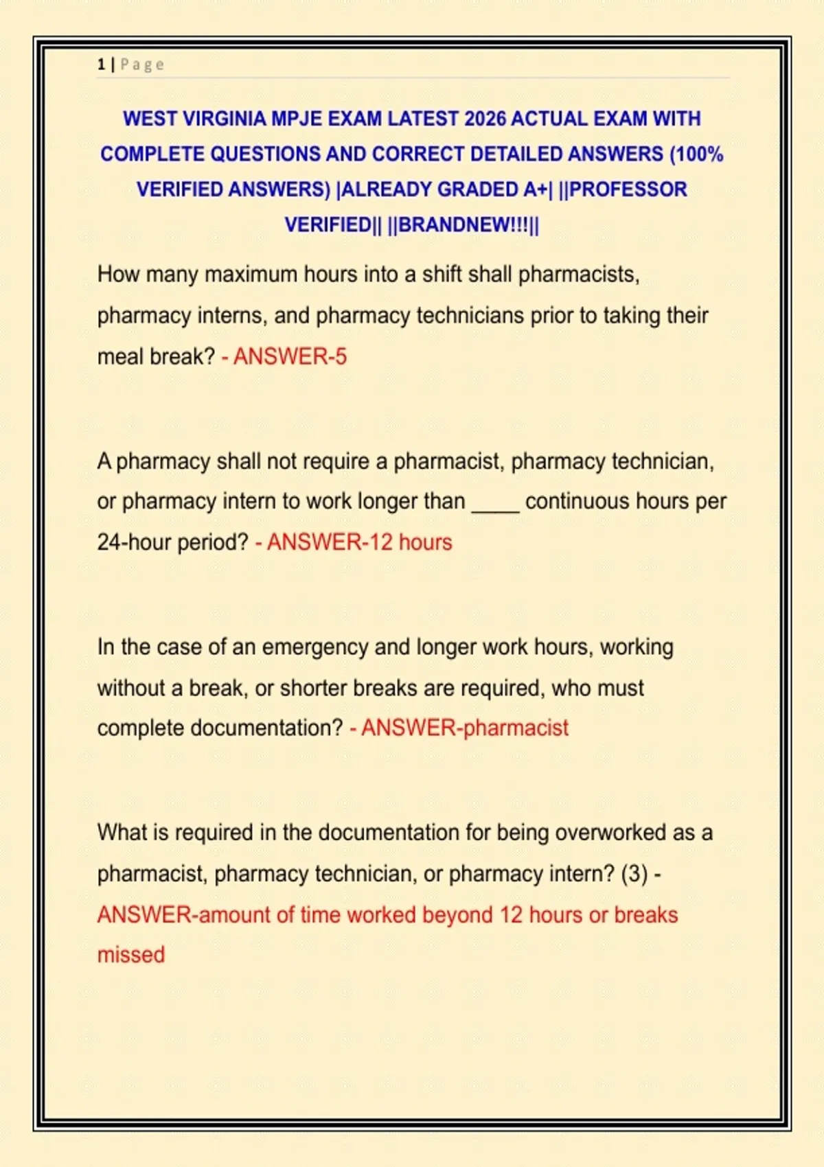 WEST VIRGINIA MPJE EXAM LATEST 2026 ACTUAL EXAM WITH