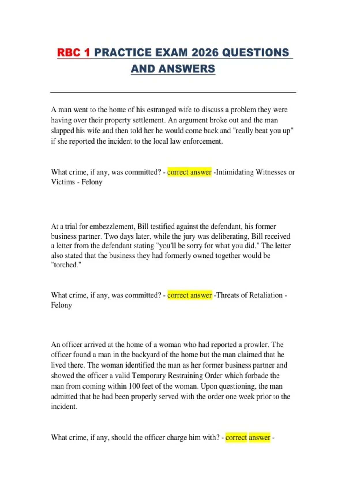 What crime, if any, was committed? - correct answer -Threats of Retaliation -