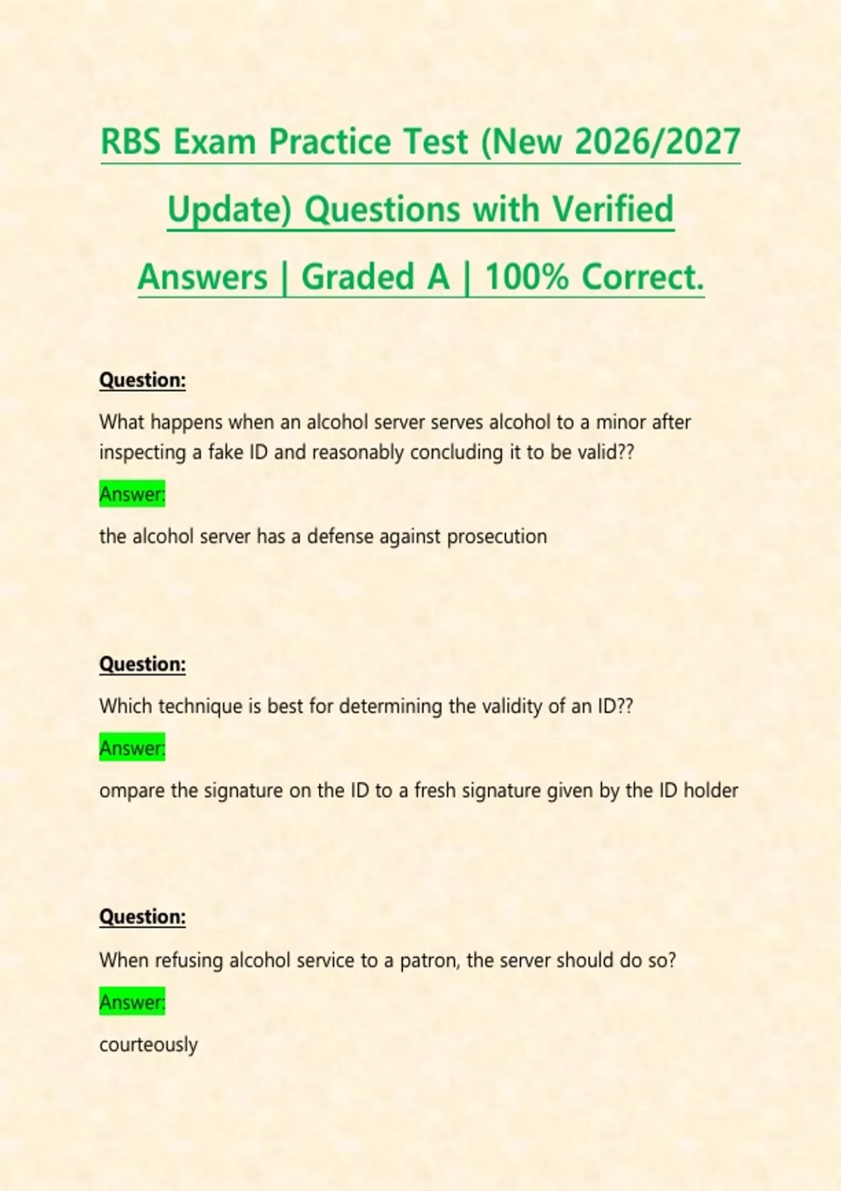 RBS Exam Practice Test (New 2026/2027 Update) Questions with Verified Answers | Graded A | 100% Correct.