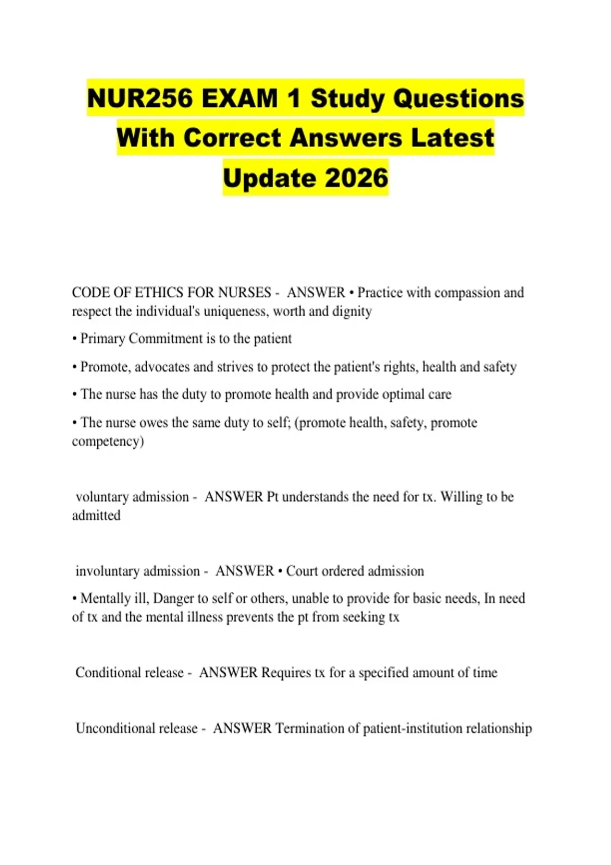 CODE OF ETHICS FOR NURSES - ANSWER • Practice with compassion and