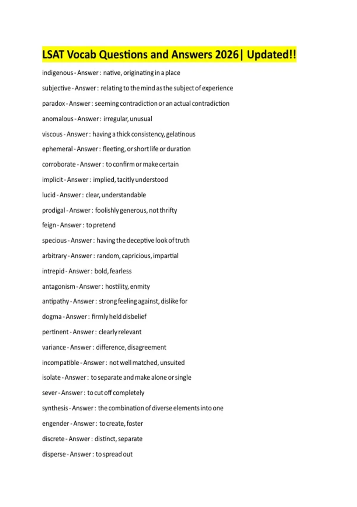 LSAT Vocab Questions and Answers 2026| Updated!!