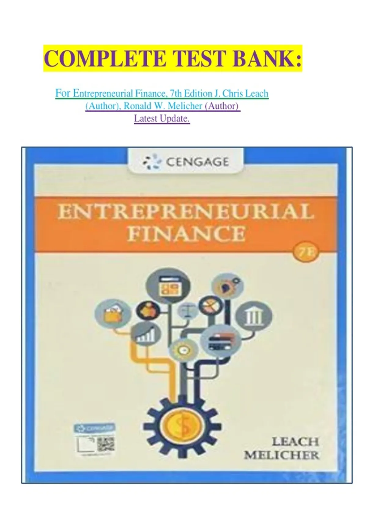 For Entrepreneurial Finance, 7th Edition J. Chris Leach