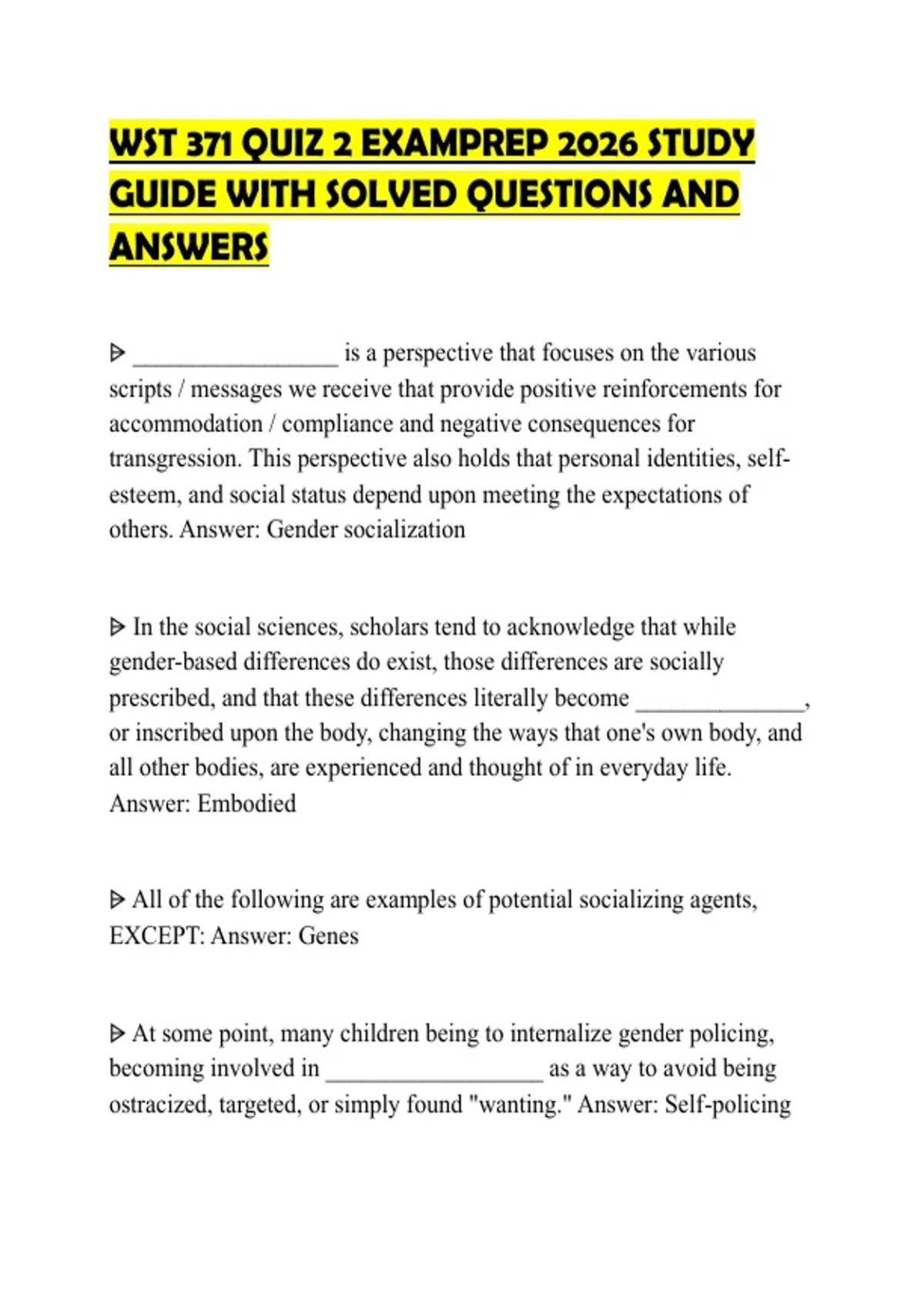 WST 371 QUIZ 2 EXAMPREP 2026 STUDY