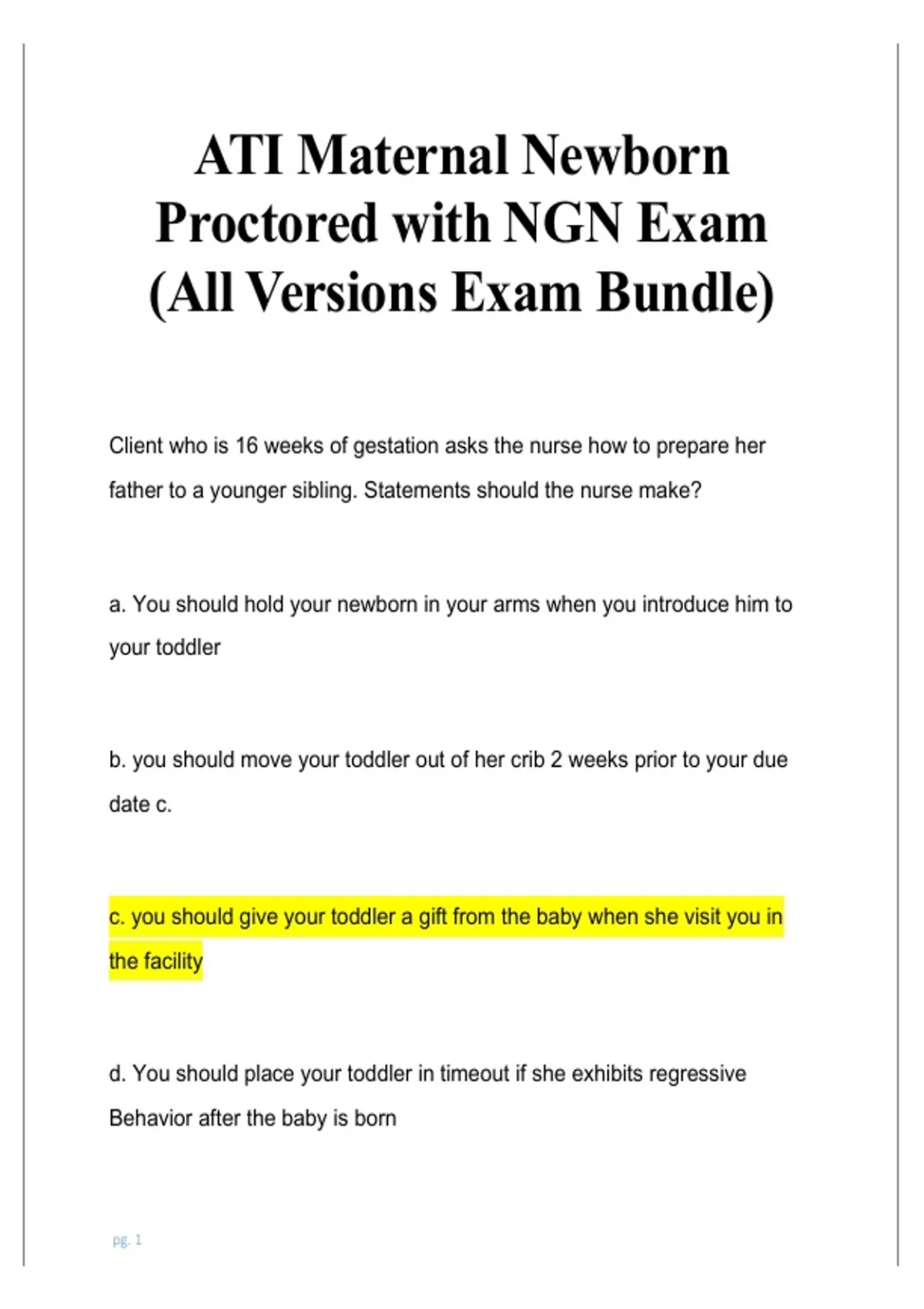 ATI Maternal-Newborn Proctored Exam with NGN | All Versions Exam Bundle 2 Files Merged Verified 2025–2026
