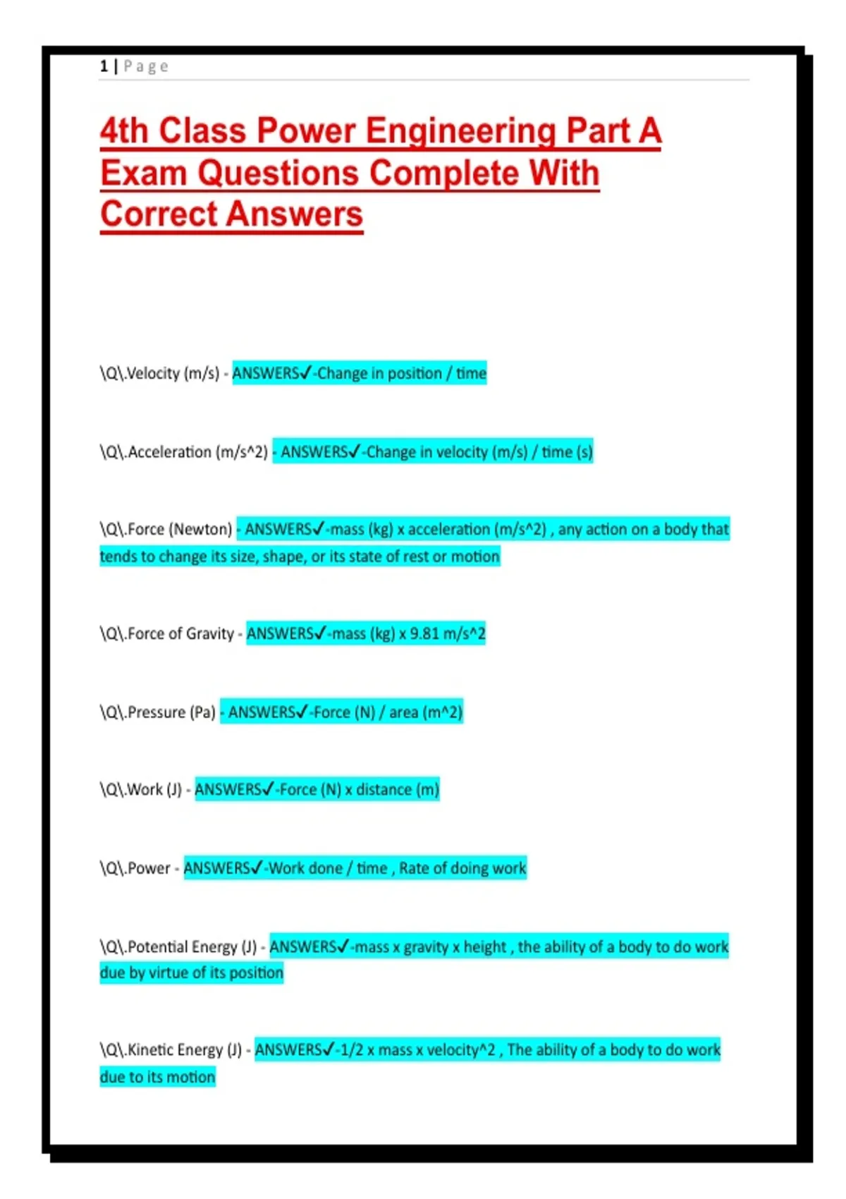 \Q\.Kinetic Energy (J) - ANSWERS✔-1/2 x mass x velocity^2 , The ability of a body to do work