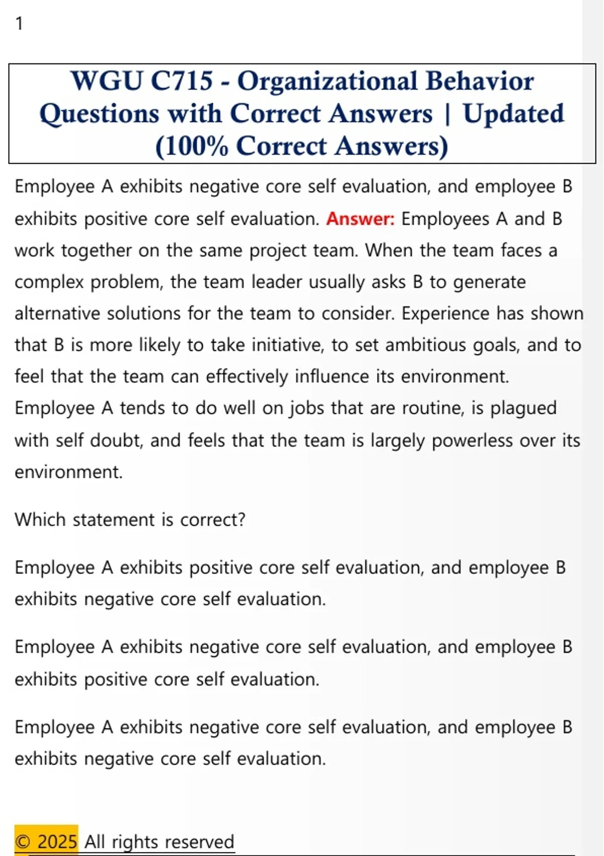 exhibits positive core self evaluation. Answer: Employees A and B