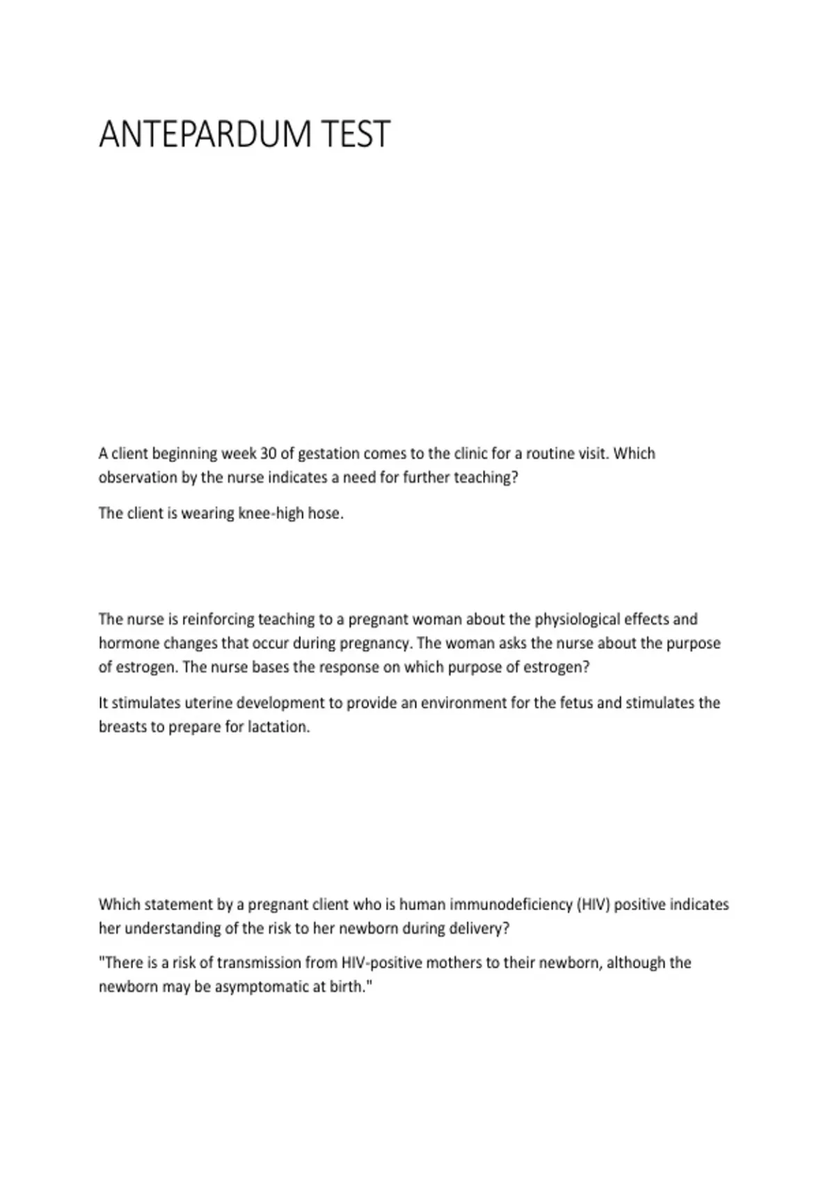 ANTEPARDUM TESTExam Q&A with Rationales