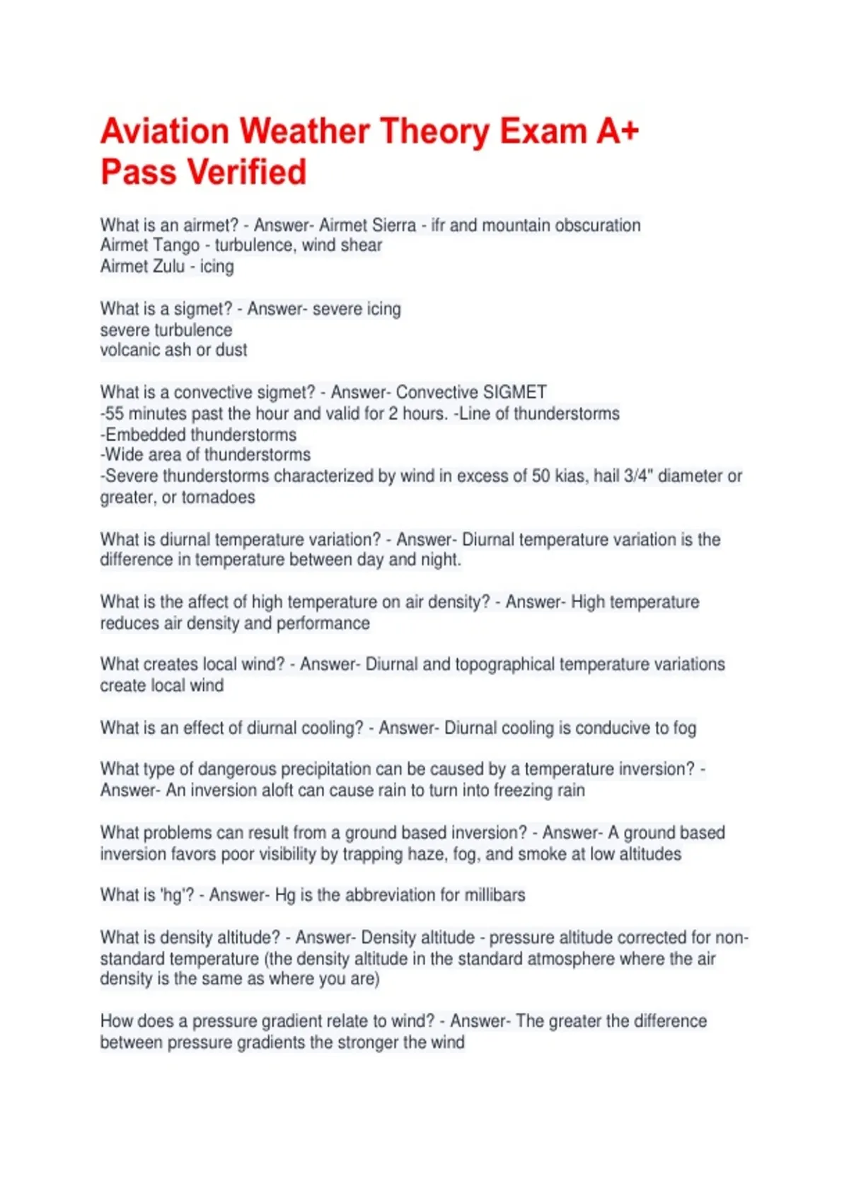 What is density altitude? - Answer- Density altitude - pressure altitude corrected for non-