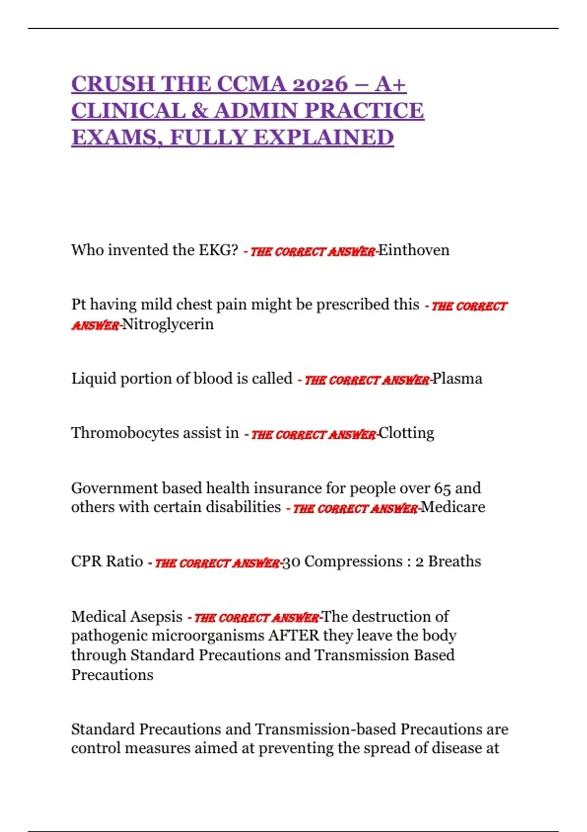 CRUSH THE CCMA 2026 – A+ CLINICAL & ADMIN PRACTICE EXAMS, FULLY EXPLAINED